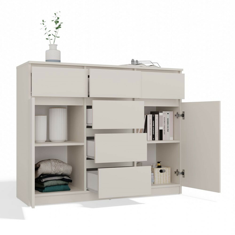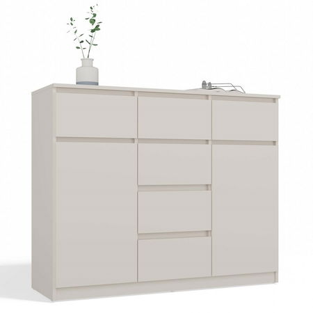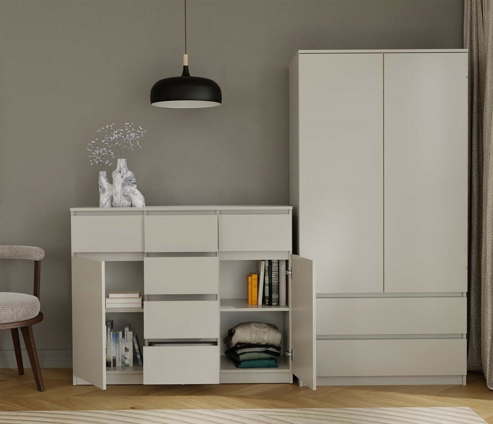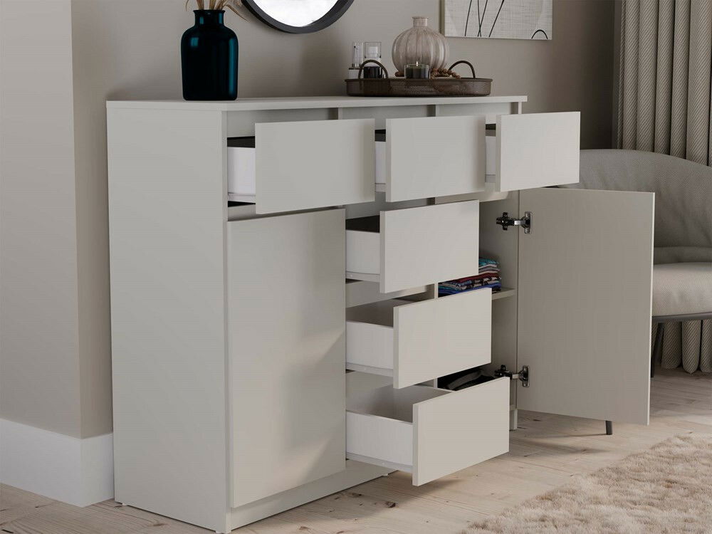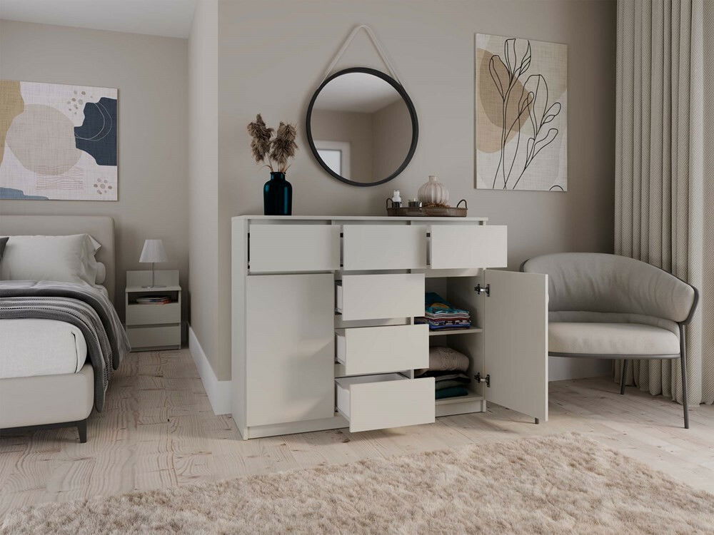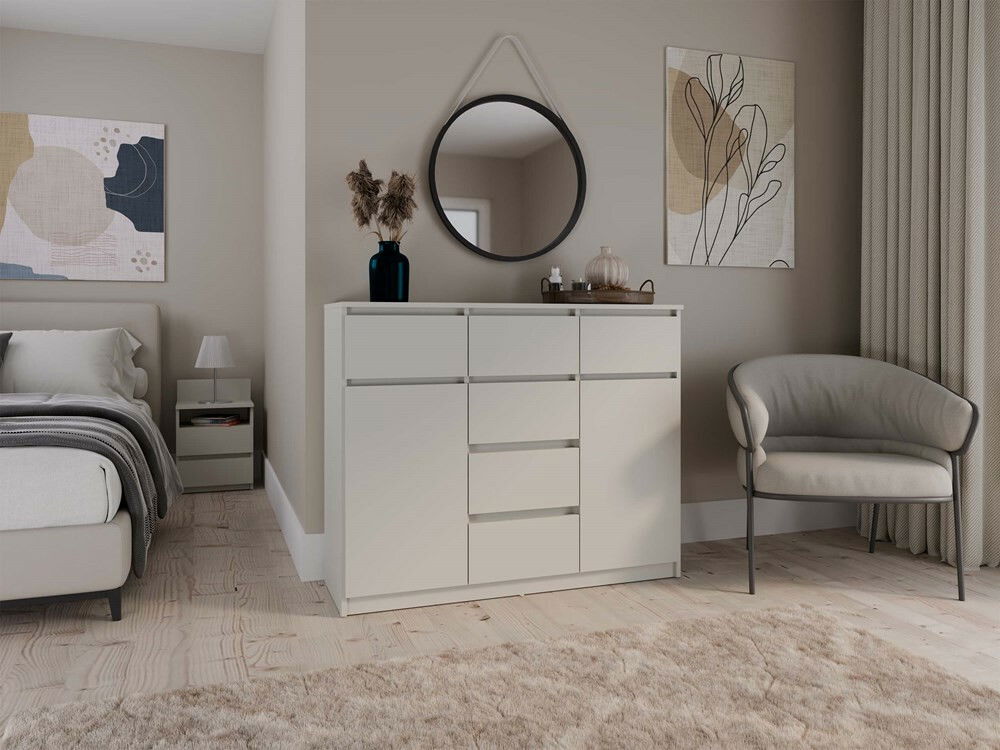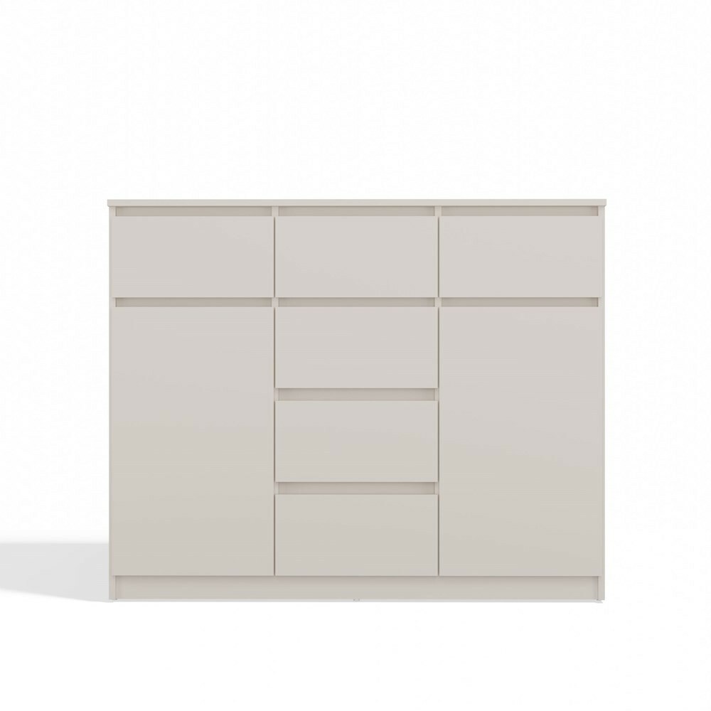 ZobrazitKomoda Musecalo 13 v elegantní barvě kašmír je ideálním řešením pro ty, kdo hledají kombinaci funkčnosti a moderního designu. S rozměry 120 cm na šířku a 96,5 cm na výšku nabízí dostatek úložného prostoru v podobě dvou dveří a šesti prostorných zásuvek, které se pohodlně otevírají na válečkových vodítkách. Minimalistický vzhled bezúchytových front skvěle zapadne do jakéhokoli interiéru, přičemž dodá prostoru teplo a eleganci. Komoda je dodávána v balení pro samostatnou montáž, což usnadňuje její složení.