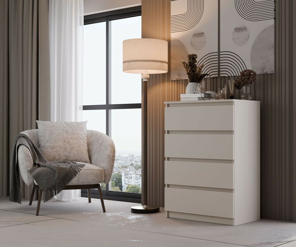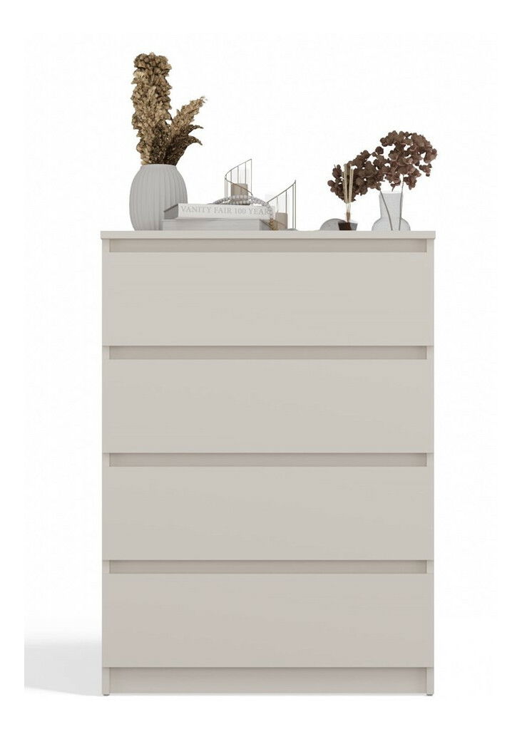 ZobrazitKomoda Musecalo 2 v elegantním kašmírovém odstínu je ideálním řešením pro moderní interiéry, které potřebují praktický a stylový nábytek. Se čtyřmi prostornými zásuvkami nabízí dostatek úložného prostoru pro různé předměty, přičemž minimalistická konstrukce bezúchytových front dodává nábytku moderní vzhled. Vyrobená z kvalitní laminované dřevotřísky as odolnými ABS hranami, tato komoda je nejen estetická, ale také funkční. Vytvořte si jedinečný prostor s tímto nadčasovým kusem nábytku.