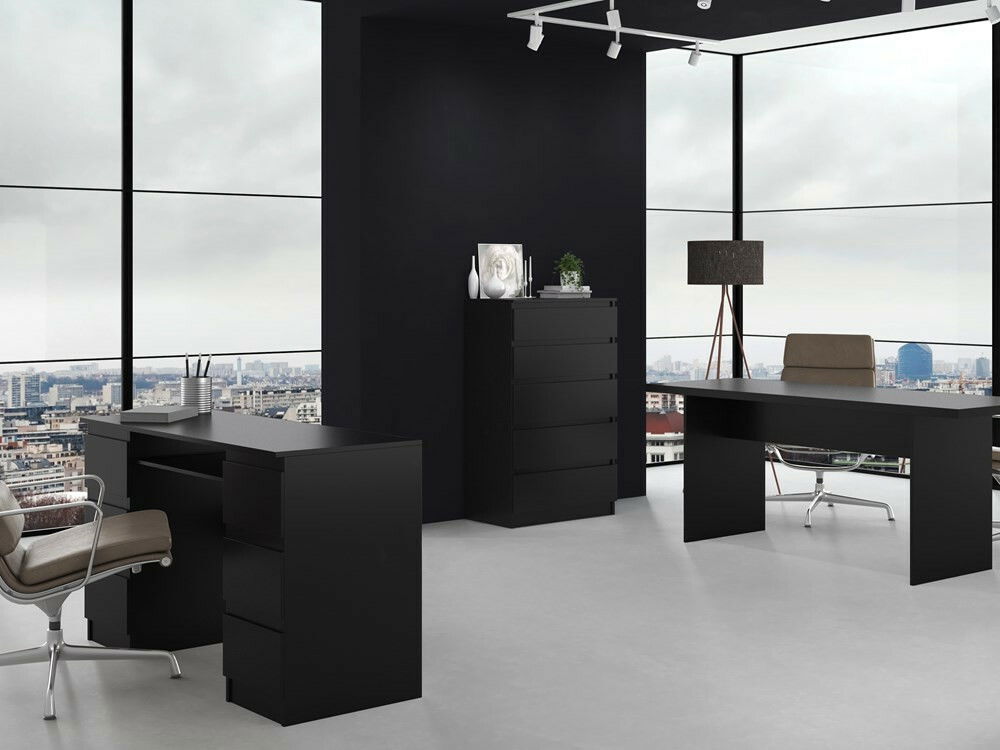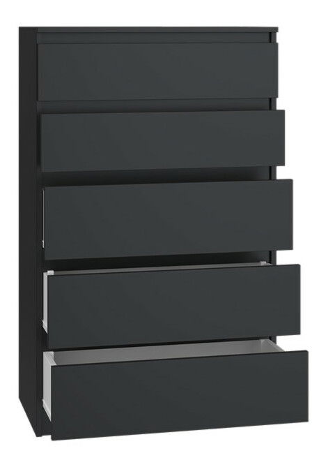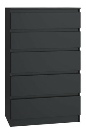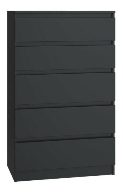 ZobrazitKomoda Musecalo 4 v elegantní černé barvě je ideálním řešením pro moderní interiéry, kde se potýká funkčnost s minimalistickým designem. Její bezúchytové fronty a hladké boky z laminované dřevotřísky s ABS hranami zajišťují nejen estetický vzhled, ale také vysokou odolnost vůči mechanickému a chemickému poškození. S rozměry 70 cm na šířku a 109,5 cm na výšku nabízí dostatek úložného prostoru, přičemž zásuvky na válečkových vodítkách garantují pohodlné a bezpečné používání. Tento kus nábytku skvěle doplní vaši ložnici, obývací pokoj nebo dětský pokoj.