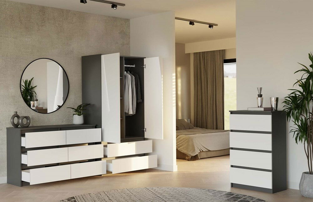 ZobrazitKomoda Musecalo 6 120 je moderní a praktický nábytek, který se skvěle hodí do různých interiérů, jako jsou ložnice, obývací pokoje či dětské pokoje. S šesti prostornými zásuvkami nabízí dostatek místa pro uskladnění oblečení, dokumentů a jiných drobností. Její elegantní kombinace antracitového korpusu a bílých front dodává nábytku svěží vzhled, který se snadno integruje do skandinávských i klasických aranžmá. Díky kvalitnímu zpracování a ergonomickým bezúchytkovým frontám je používání této komody nejen pohodlné, ale také stylové.