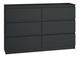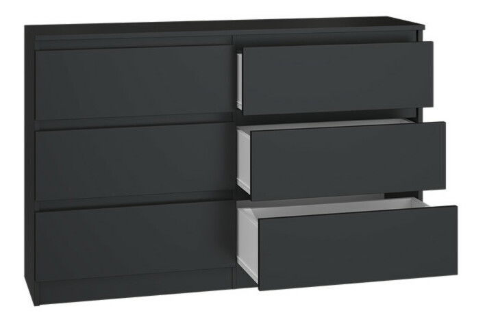 ZobrazitKomoda Musecalo 6 120 v elegantní černé barvě je ideálním řešením pro moderní interiéry, kde se potýká funkčnost s estetikou. S minimalistickou konstrukcí a šesti prostornými zásuvkami bez úchytek nabízí pohodlné a bezpečné používání. Vyrobená z kvalitní laminované dřevotřísky, tato komoda zaručuje dlouhou životnost a snadnou údržbu. Její univerzální design se hodí do ložnice, obývacího pokoje nebo dětského pokoje, přičemž dodává prostoru nádech elegance a stylu. Tento praktický nábytek je skvělou volbou pro každého, kdo ocení spojení jednoduchosti a moderního vzhledu.