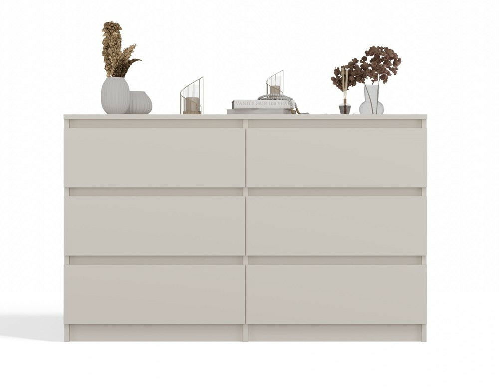 ZobrazitKomoda Musecalo 6 120 v elegantním kašmírovém odstínu je ideálním řešením pro moderní interiéry, které hledají kombinaci funkčnosti a stylu. S šesti prostornými zásuvkami nabízí dostatek úložného prostoru pro vaše osobní věci, přičemž minimalistická konstrukce bezúchytových front dodává nábytku moderní vzhled. Vyrobená z kvalitní laminované dřevotřísky, tato komoda je nejen esteticky příjemná, ale také praktická na údržbu. Vytvořte si jedinečný prostor s touto nadčasovou komodou, která osloví každého milovníka designu.
