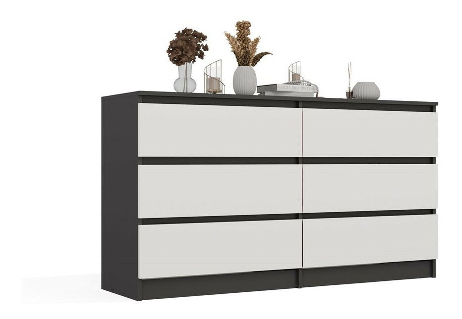 ZobrazitKomoda Musecalo 6 140 je moderní kus nábytku, který se skvěle hodí do různých interiérů, od ložnic po dětské pokoje. S elegantním designem v kombinaci antracitového korpusu a bílých front nabízí nejen stylový vzhled, ale i praktičnost. Šest prostorných zásuvek zajišťuje dostatek místa pro uskladnění oblečení, dokumentů či jiných předmětů, přičemž minimalistická konstrukce a bezúchytové fronty zaručují snadné používání. Vyrobená z kvalitní laminované dřevotřísky, komoda je odolná vůči poškození a snadno se udržuje v čistotě.