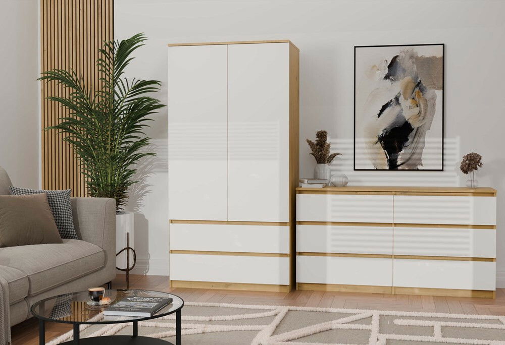 ZobrazitKomoda Musecalo 6 140 je moderní a elegantní kus nábytku, který se hodí do různých interiérů, od ložnic po dětské pokoje. S kombinací teplého odstínu dubu artisan a klasické bílé barvy front, tato komoda dodává prostoru jedinečný charakter. Je vybavena šesti prostornými zásuvkami, které nabízejí dostatek místa pro uskladnění oblečení, dokumentů či jiných předmětů. Minimalistická konstrukce a bezúchytové fronty zaručují snadné používání a moderní vzhled, přičemž kvalitní materiály zajišťují dlouhou životnost a odolnost vůči poškození.
