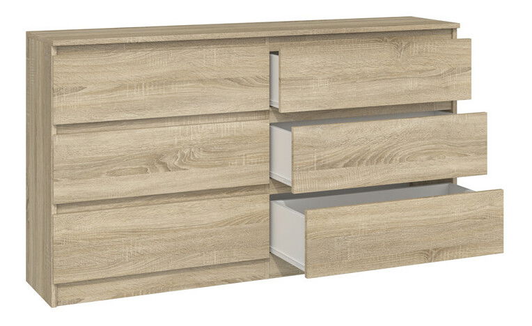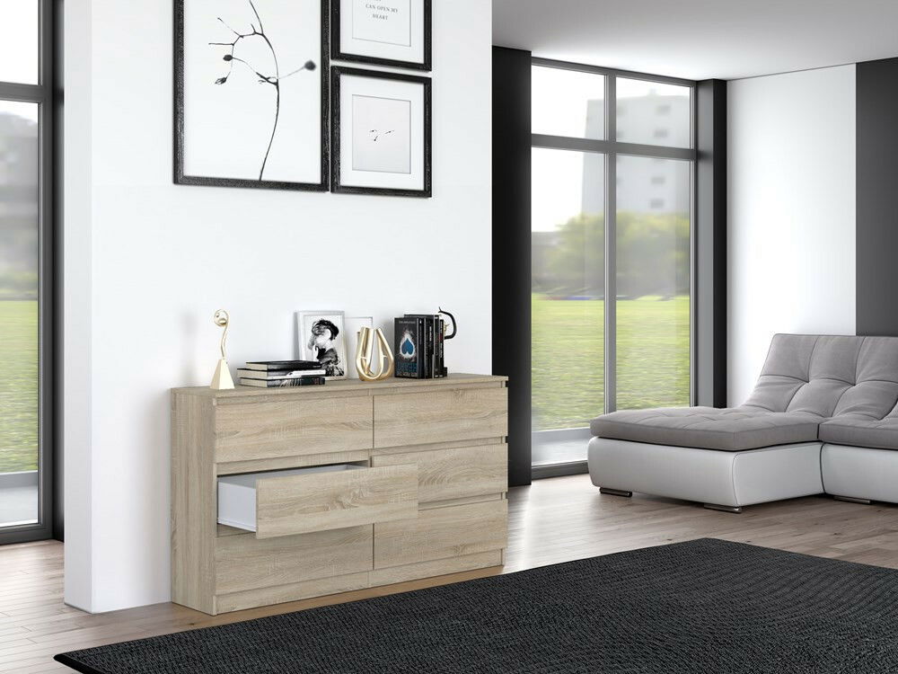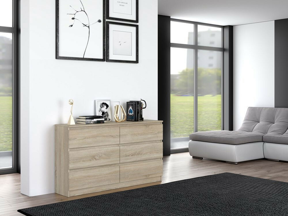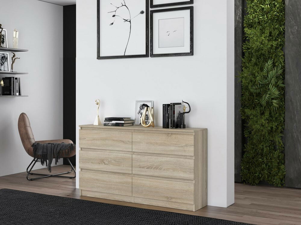 ZobrazitKomoda Musecalo 6 140 v elegantní barvě dub sonoma představuje ideální doplněk do moderních interiérů. Její minimalistická konstrukce a bezúchytové fronty zásuvek zajišťují nejen pohodlné používání, ale také estetický vzhled, který osloví každého, kdo si cení kombinace jednoduchosti a elegance. Vyrobená z kvalitní laminované dřevotřísky s hladkými boky, tato komoda nabízí dostatek úložného prostoru, čímž je skvělou volbou do ložnice, obývacího pokoje nebo dětského pokoje. S její funkčností a moderním designem se stane neodmyslitelnou součástí vašeho domova.