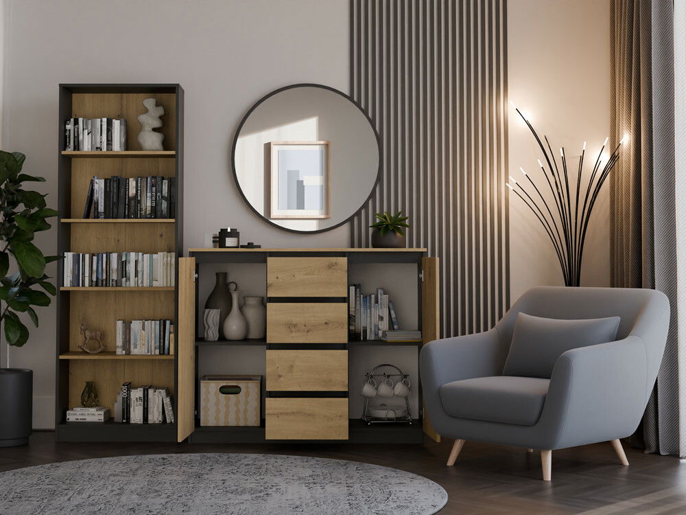 ZobrazitKomoda Musecalo 8 je moderní a praktický nábytek, který skvěle zapadne do každé ložnice, obývacího pokoje nebo dětského pokoje. S jejím elegantním designem v kombinaci antracitové a bílé barvy nabízí nejen stylový vzhled, ale také dostatek úložného prostoru. Vnitřní uspořádání zahrnuje dvě dveře a čtyři zásuvky, které zajišťují přehlednost a snadný přístup k věcem. Minimalistická konstrukce bezúchytkových front podtrhuje moderní charakter nábytku, přičemž kvalitní materiály zaručují dlouhou životnost. Tento kus nábytku je ideálním řešením pro ty, kteří hledají kombinaci funkčnosti a estet