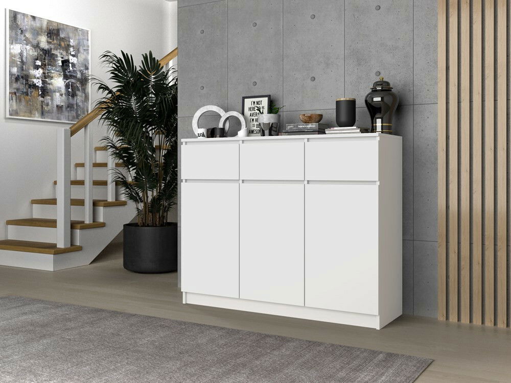ZobrazitKomoda Musecalo 9 v elegantní bílé barvě je ideálním řešením pro moderní interiéry, přičemž její minimalistická konstrukce a bezúchytové fronty dodávají prostoru vzdušnost a stylovost. S rozměry 120 cm na šířku, 40 cm na hloubku a 97 cm na výšku nabízí dostatek úložného prostoru v podobě tří párů dveří a tří zásuvek, které jsou vybaveny kvalitními válečkovými vodítky pro pohodlné a bezpečné používání. Vyrobená z laminované dřevotřísky s ABS hranami, tato komoda je nejen funkční, ale také odolná vůči mechanickému poškození.
