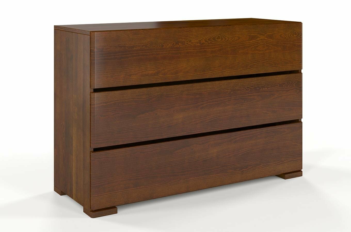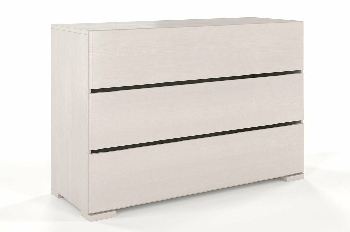 Komoda Lorenskog 3S z borovicového dřeva je velmi jednoduchá, elegantní komoda v severském stylu. Komoda se třemi šuplíky je vhodná do ložnice, dětského pokoje nebo do šatníku. Minimalistický design a čisté linie zapadnou do každého moderního pokoje. Komoda je ideální pro odkládání ložního prádla, oblečení i hraček. Zásuvky se pohybují po kovových kolejničkách, pohodlně se otevírají a při dovírání se zpomalí a potichu zavřou. Pevná dřevěná konstrukce z borovice je zárukou dlouhé životnosti, stability a odolnosti komody. Povrch je ošetřen více vrstvami laku, čímž je zajištěna odolnost vůči oděru a opotřebení. Rozměry jsou šířka 120 cm, výška 81 cm a hloubka 45 cm. Vnitřní rozměry zásuvky: 112 x 20 x 38 cm. U tohoto produktu je požadována záloha ve výši 50% z ceny produktu s DPH předem. Moderní vysoce kvalitní lak na bázi vody zvýrazní také použitou barvu a pomáhá chránit před přirozeným stárnutím. Použitý lak splňuje normu EN71-3.