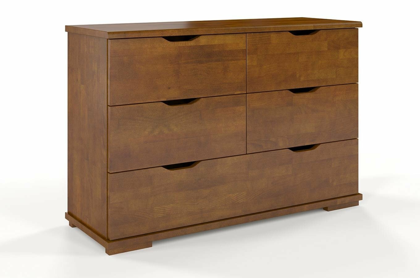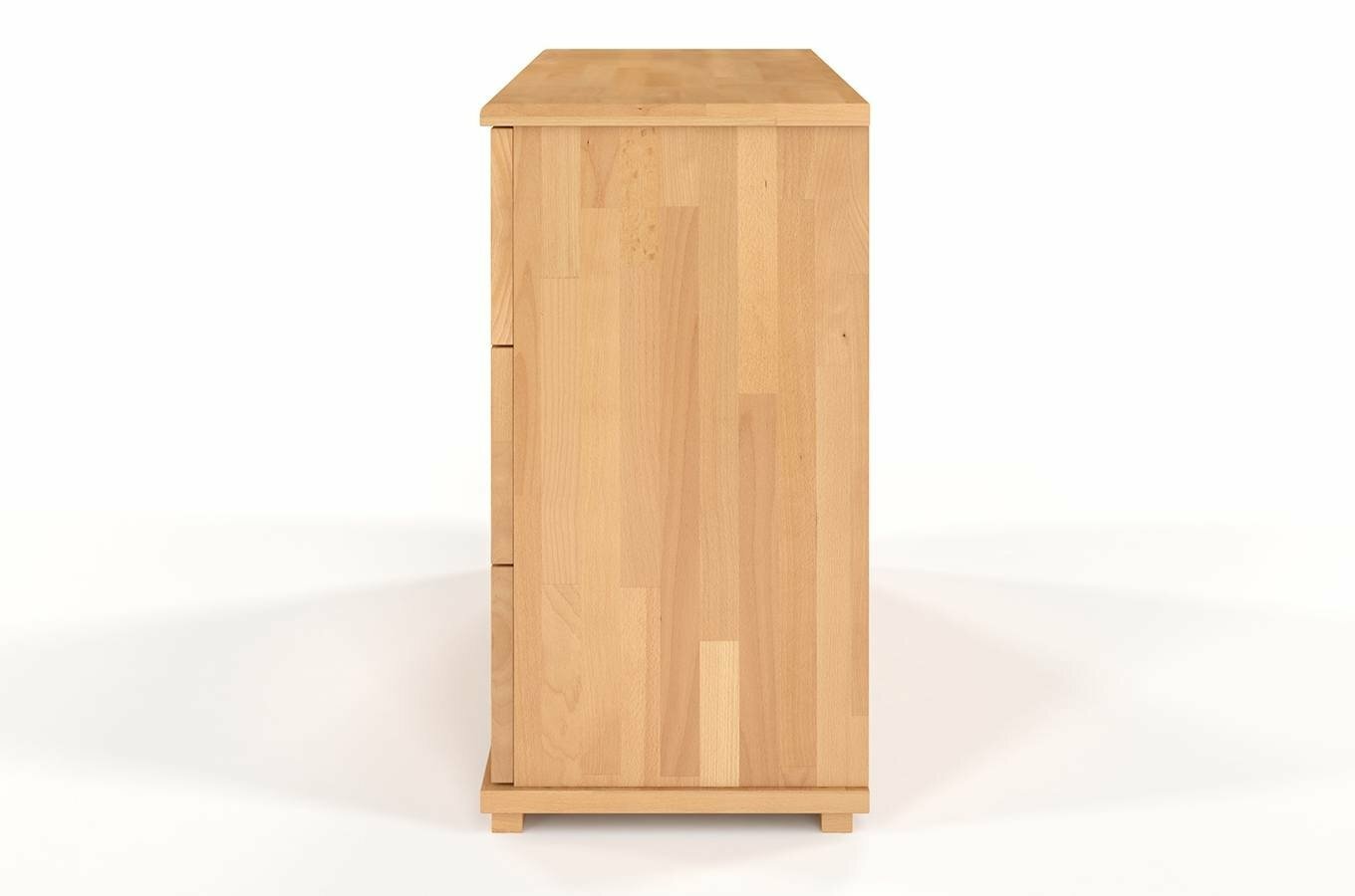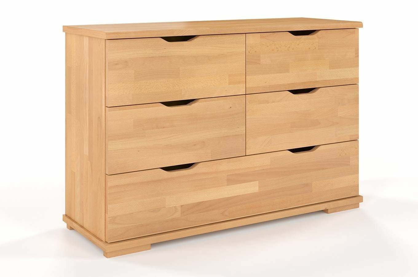 Komoda Naturlig Tosen 5S (buk) o výšce 90 cm a hloubce 45 cm je ideální pro ložnice, dětské pokoje, šatníky či předsíně. S pěti zásuvkami poskytuje dostatek místa pro uskladnění ložního prádla, oblečení, hraček a jiných věcí. S jednoduchým designem a čistými liniemi se hodí do moderního pokoje a nekonfliktuje s jiným nábytkem. Zásuvky se pohybují po kovových kolejničkách a otevírají se pohodlně díky výřezům v horní části. Dřevěná konstrukce z buku zajišťuje stabilitu a odolnost. Povrch je ošetřen vrstvami laku, který chrání před opotřebováním a oděrem. Rozměry komody jsou: šířka 120 cm, výška 90 cm, hloubka 45 cm, vnitřní rozměry menší zásuvky jsou 49,5 x 20 x 38 cm a větší zásuvky 107,5 x 20 x 38 cm. Při objednávce je požadována záloha ve výši 50% z ceny produktu s DPH předem. Lak na bázi vody zdůrazňuje přirozenou strukturu dřeva a chrání před poškrábáním. Použitý lak splňuje normu EN71-3.