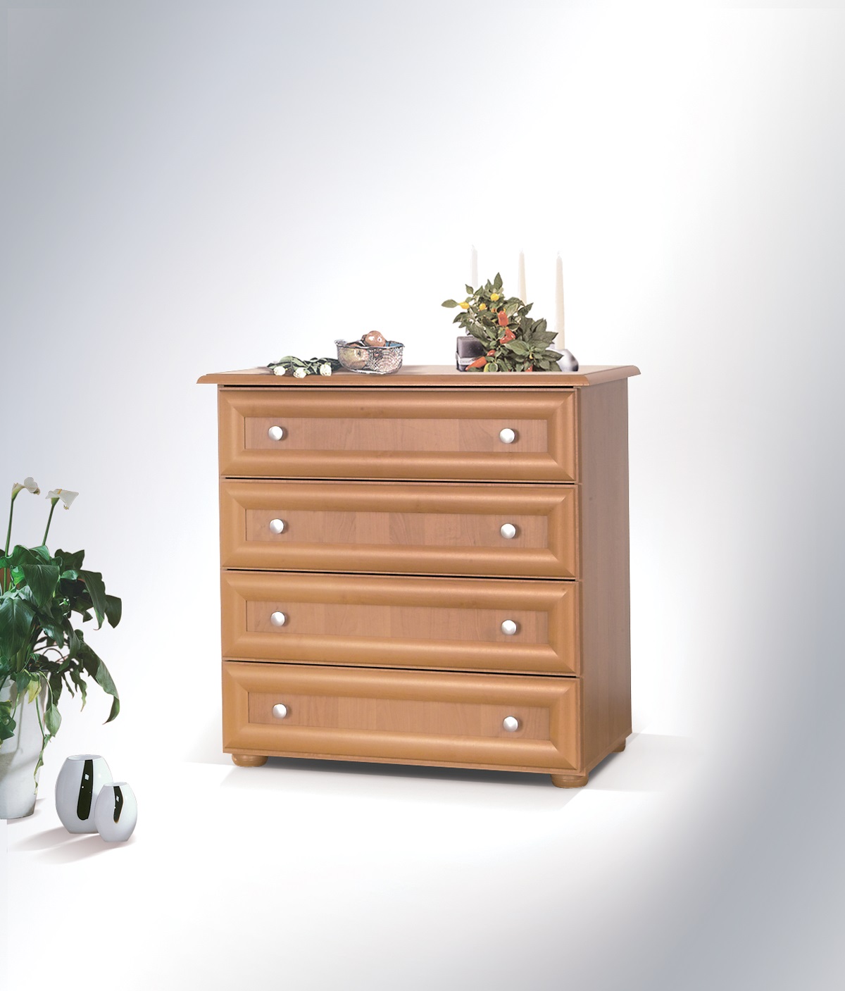 Komoda Nemesia se 4 zásvukami bude vynikat v šatníku, obývacím pokoji, dětském pokoji i v předsíni. Můžete do ní tedy uložit nejen oblečení, ale i hračky či jiné potřebné maličkosti, které se najdou v každé domácnosti. Elegantní komoda má i nízké nožičky, takže nebude celou plochou na podlaze a při manipulaci se nepoškodí komoda ani podlaha. Laminovaná dřevotřísková deska, z níž je komoda vyrobena si navíc nevyžaduje žádnou speciální péči, na čištění vám vystačí vlhký hadřík.