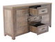 Dvoudveřová komoda Nevada se třemi zásuvkami uprostřed v příjemném a decentním barevném provedení dub lefkas tmavý se bude pěkně vyjímat ve vašich obývacích pokojích, ložnicích, jídelnách či pracovnách. Dvířka a zásuvky mají masivnější kovové úchyty.