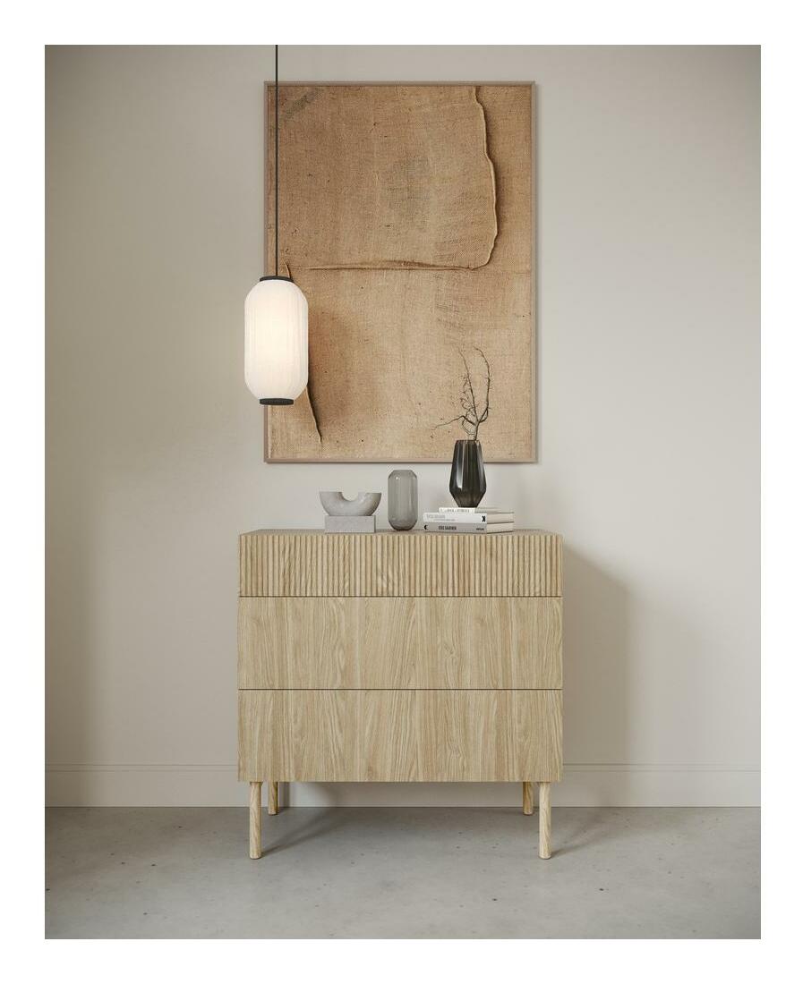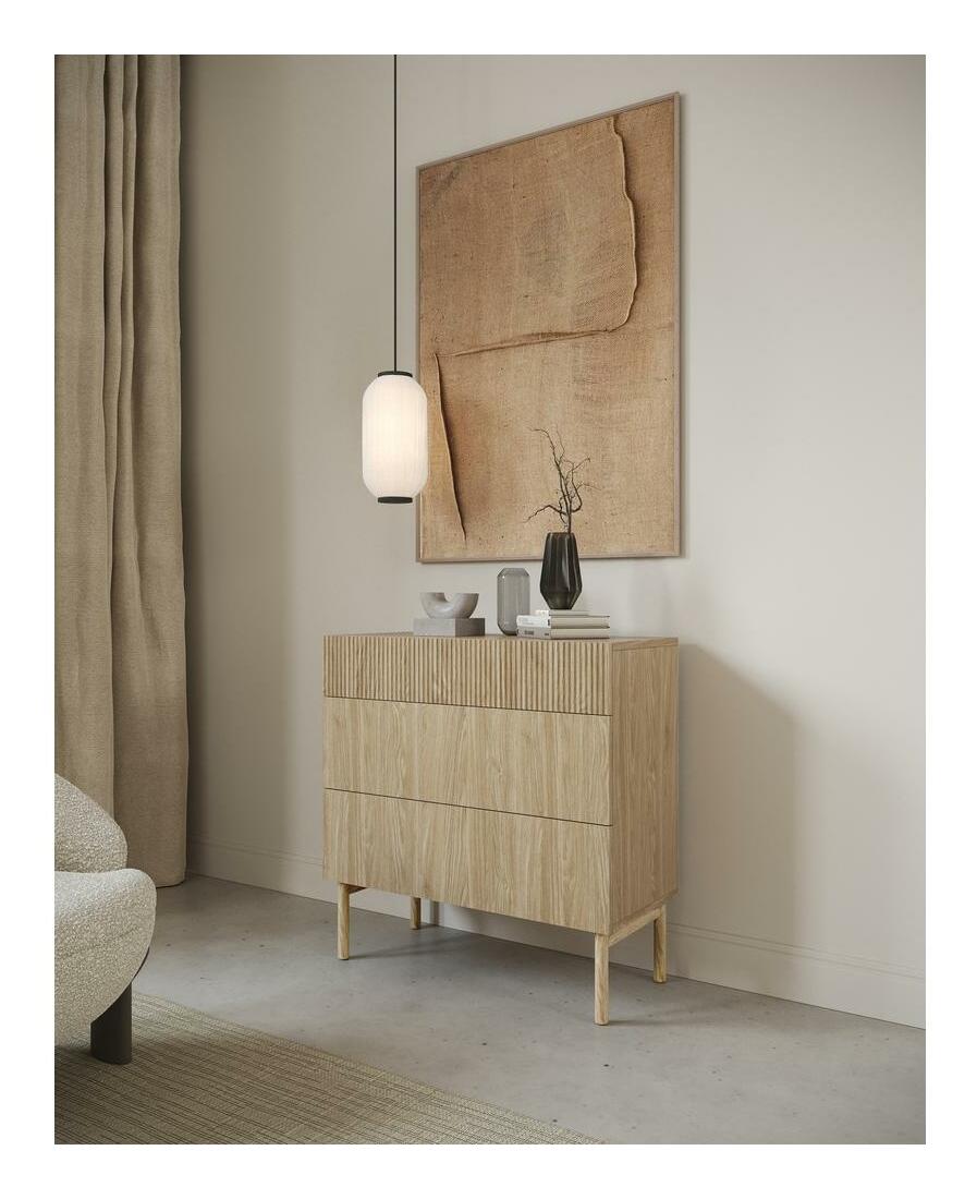 ZobrazitSníte o interiéru, ve kterém se snoubí minimalismus japonského designu s teplem skandinávského dřeva? Objevte kolekci a vneste do svého bytu klid, eleganci a funkčnost Komoda se třemi šuplíky je harmonickým spojením funkčnosti a estetiky v japonském stylu! Nábytek je vyroben z odolné laminované desky a MDF desky s klasickými a přírodními barevnými čely, což dodává interiéru přirozenou a příjemnou estetiku. Korpus je osazen na pevných dřevěných nožičkách, zvýrazňujících eleganci nábytku. Dveře byly navrženy s ohledem na funkčnost a jsou vybaveny systémem push to open, který umožňuje snadné a bezproblémové otevírání. Vnitřek komody překvapí svojí všestranností. K dispozici jsou tři praktické zásuvky, do kterých se vejdou všechny vaše věci. Japandi styl je kombinací jednoduchosti a útulnosti a kolekce dokonale odráží tuto rovnováhu. Detaily produktu: korpus vyrobený z laminované desky v barvě R20348 Oiled Oak, tloušťka 16 mm, odolný vůči vlhkosti, teplotě a poškrábání, frézované přední strany vyrobené z made. z MDF desky potažené fólií v barvě korpusu, použitý systém push to open na čelech usnadňuje plynulé otevírání a zavírání nábytku, dřevěné nohy dodávají stabilitu a lehkost celé konstrukci, konstrukce vyztužená 0,5 mm ABS hrany, zásuvky umístěné na 27 mm kuličkových vodítkách, zajišťují hladké a volné vysouvání.