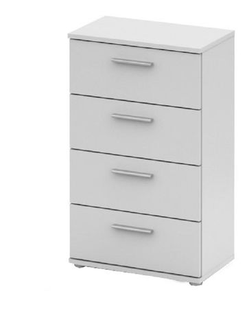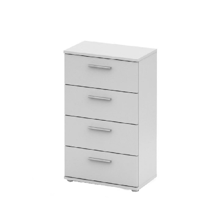 Komoda Notrea Typ 14 (bílá) o výšce 82 cm a hloubce 29 cm je praktickým nábytkem pro každý pokoj. Tato bílá komoda disponuje čtyřmi zásuvkami, které jsou dostatečně hluboké pro uskladnění různých věcí. Komoda patří do řady Noko a nabízí svěží nábytek v provedení dub sonoma. Ideální je pro zařízení studentských a dětských pokojů, ložnic, běžných kanceláří, pokojů pro hosty, případně obývacích pokojů. Komoda je vyrobena z DTD foliovaného materiálu a má šedé úchyty, což dodává celkovému designu elegantní vzhled. Komoda Notrea Typ 14 (bílá) je praktickým a moderním doplňkem do každé domácnosti.