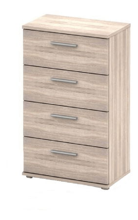 Komoda Notrea Typ 14 o výšce 82 cm a hloubce 29 cm je ideálním nábytkem pro studentské a dětské pokoje, ložnice, kanceláře, pokoje pro hosty nebo obývací místnosti. Komoda má 4 zásuvky a její provedení v dub sonoma barvě dodává svěží vzhled jakémukoli interiéru. Stavební materiál komody je DTD foliovaná o tloušťce 16 mm a šedé úchyty. Komoda se dodává v demontu a její rozměry jsou 50x29x82 cm. S touto komodou získáte nejen praktický, ale také moderní kus nábytku, který Vám poskytne dostatek úložného prostoru.