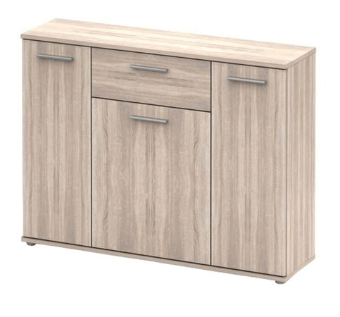 Komoda Notrea Typ 35 výška 82 cm hloubka 29 cm je praktickým a stylovým doplňkem do každé místnosti. Svým 3 dvířky a šuplíkem v horní části uprostřed poskytuje dostatek prostoru pro uskladnění různých věcí. Komoda je vyrobena z DTD foliované látky v provedení dub sonoma a má šedé úchyty. Je ideálním nábytkem pro studentské a dětské pokoje, ložnice, běžné kanceláře, pokoje pro hosty nebo obývací pokoje. Rozměry komody jsou 110x29x82 cm a tloušťka materiálu je 16 mm. Komoda se dodává v demontu, což umožňuje jednoduchou montáž. S touto komodou získáte nejen praktické úložné místo, ale také moderní a elegantní nábytek pro vaši domácnost.