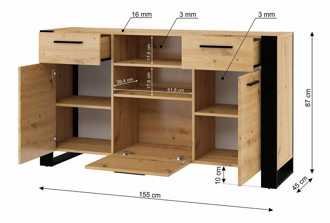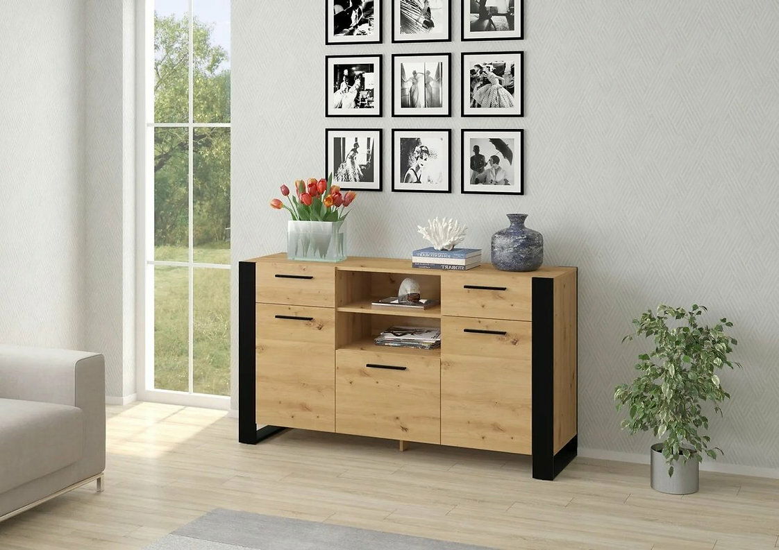 Komoda Nulakka C (dub artisan + matná černá)