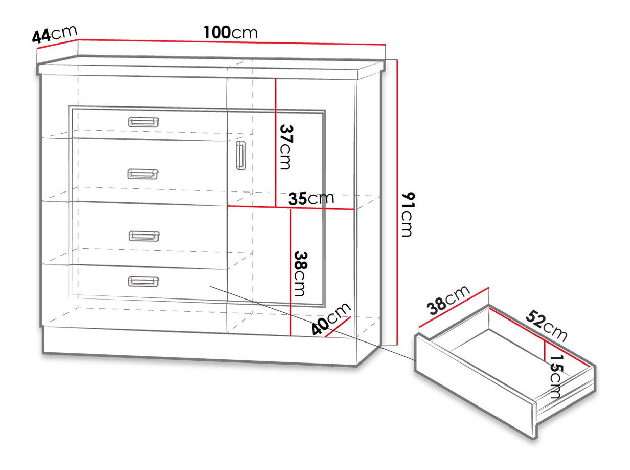 ZobrazitKombinovaná komoda je ideální volbou pro ty, kdo hledají pohodlí a styl. Sháníte domů univerzální úložný prostor, do kterého byste uložili svršky, dokumenty a třeba nevyužité sportovní náčiní? Pořiďte si kombinovanou komodu Noris N22, která vás zároveň potěší svým příjemným elegantním provedením. Vyberte si také ideální barvu komody. Rozměry: šířka: 100 cm výška: 90 cm hloubka: 44 cm Barva: barevné provedení si vyberte zde Doplňující informace: LTD (16 mm), deska do 32 mm ochranná PVC hrana (2 mm) lišty na dvířkách: MDF úchyty lišit od skutečných o ± 3 cm. Rozměry nábytku neměníme na přání zákazníka Záruční doba: 24 měsíců