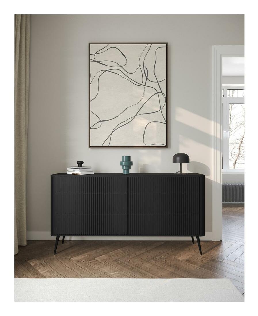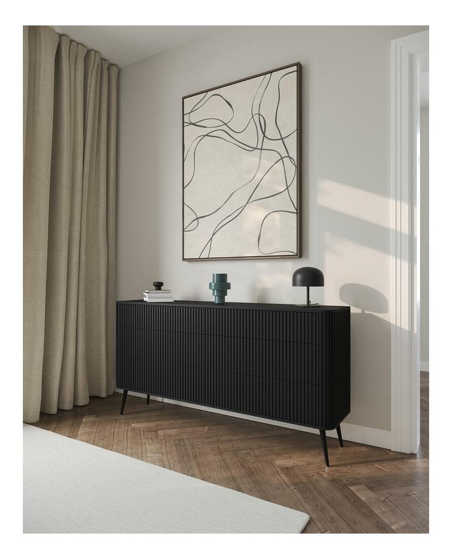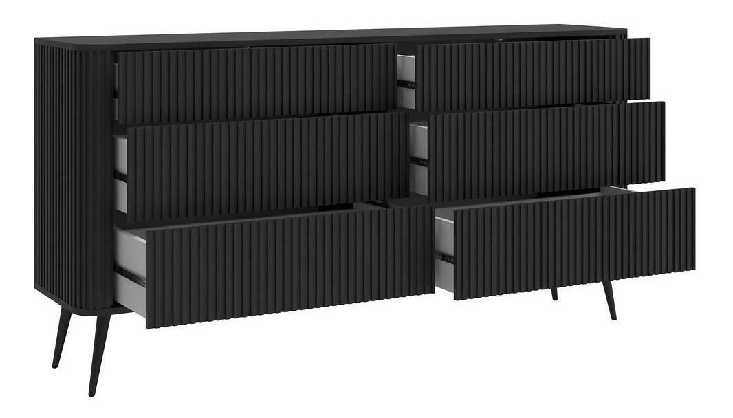 ZobrazitChcete, aby váš interiér potěšil moderním designem a praktickými řešeními? Kolekce nábytku splní vaše očekávání, vyrobená z odolné laminované dřevotřískové desky a laminované MDF fólie, nabízí pevnost a styl, který vydrží dlouhá léta a zaručují dlouhodobé používání Kolekce umožňuje kreativní a libové uspořádání prostoru, dokonale přizpůsobené vašim potřebám. Díky systému otevírání push to open se používání nábytku stává jednoduchým a pohodlným, odpadá nutnost používání tradičních úchytek Vysoké kvé nohy dodávají nábytku lehkost a moderní charakter a rýhovaná čela dodávají jedinečný vzhled. Kolekce nabízí různé barevné varianty, díky čemuž dokonale ladí s vaším interiérem. Promyšlená úložná řešení, jako jsou zásuvky a skříňky, nabízejí dostatek prostoru pro vaše věci, pomáhají udržovat pořádek ve vaší domácnosti Výběrem nábytku investujete do stylu, pohodlí a praktičnosti, které každý den potěší vaše oko. komoda se šesti zásuvkami, rýhovaná čela, korpus z laminované MDF fólie 18 mm a laminované dřevotřískové desky 18 mm, čela z laminované MDF folie 18 mm, stolová deska z laminované dřevotřísky 16 mm, hrana PVC 0,8 mm, zadní 3,2 mm, vysoké kvé nožičky, barva nohou černá, barva černá (egger U999), tiché zavírání zásuvek, systém push to open, kulové vedení zásuvek.