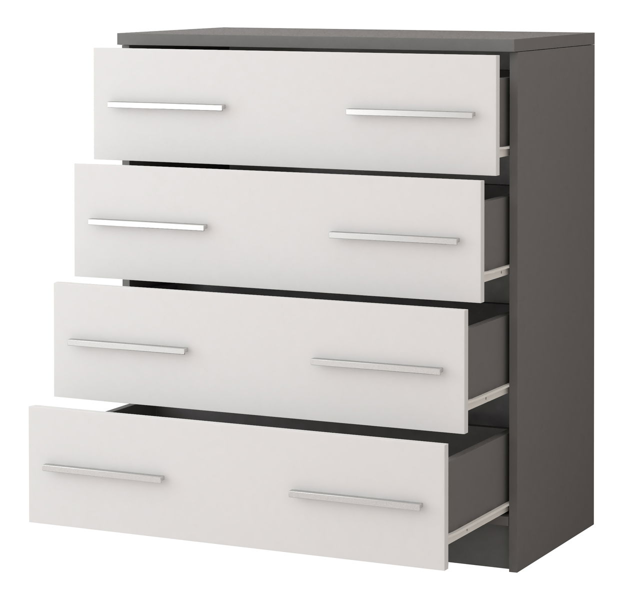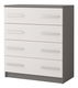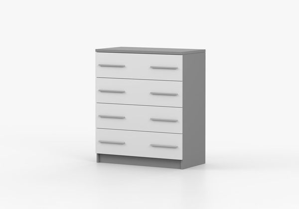 Komoda Oleg v minimalistickém stylu je navržena pro moderní interiéry. Je vyrobena z 16 mm silné dřevotřísky pro vnější i vnitřní části, což zaručuje její pevnost a odolnost. Okraje jsou doplněny 0,5 mm silnými ABS hranami, což přidává k její kvalitě a estetickému vzhledu. Komoda má stříbrné, plastové úchyty, které jsou praktické a zároveň doplňují její minimalistický design. Bez nožiček, komoda poskytuje stabilní a přímý kontakt s podlahou. Se čtyřmi zásuvkami nabízí dostatek úložného prostoru pro oblečení, dokumenty nebo jiné předměty. Její čisté linie a jednoduchý design jsou ideální pro ty, kdo hledají funkční a stylový kus nábytku.