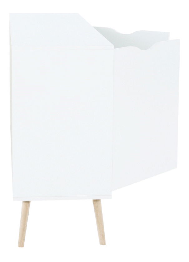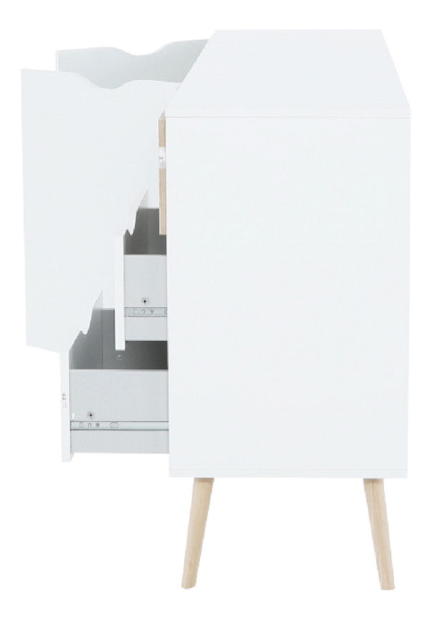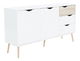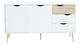 Tato komoda vás osloví nejen stylovým retro designem, ale i dostatkem úložného prostoru, který komoda poskytuje. Má dvě dvířka vedle sebe a tři zásuvky na pravé straně. Dvířka a zásuvky mají zajímavé vykrojené úchyty. Barevné provedení komody je bílá v kombinaci s dubem sonoma.