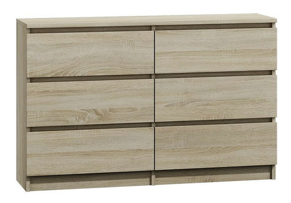 ZobrazitStylová široká komoda se šuplíky Orion 120 OK6 efektivně doplní moderní interiér ve skandinávském a klasickém stylu. Díky široké škále barev je nábytek ideální jako komoda do ložnice, obývacího pokoje a předsíně. Četné zásuvky, které zaplňují komodu, jsou vybaveny vodícími kladkami, díky čemuž je každodenní používání nábytku ještě jednodušší.