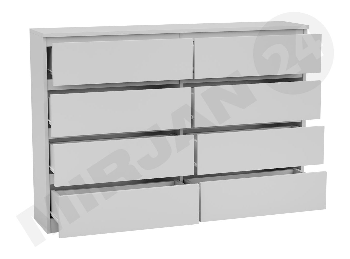 Komoda Orion je mimořádně praktický a elegantní nábytek do obývacího pokoje, ložnice a předsíně. Jednoduchost komody je podporována univerzálními barvami – tato kombinace činí nábytek ideálním pro jakýmkoli styl zařízení. Nepochybnou výhodou komody je velká kapacita zásuvek. Využít ji můžete ke skladování oděvů, dokumentů a různých doplňků. Snadný přístup k uloženým věcem v komoře je zajištěn systémem otevírání zásuvky bez rukojeti a zařízením s vodícími lištami.