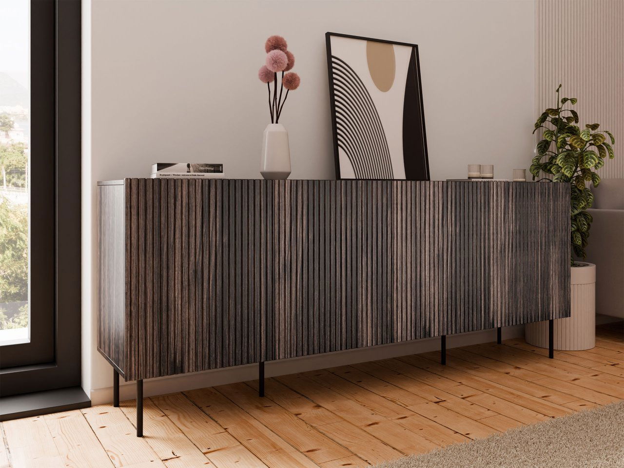 ZobrazitKomoda je ideální volbou pro ty, kteří hledají pohodlí a styl. Pokojová komoda Ostani 200 4D je skvělou volbou do klasických, moderních i industriálních interiérů. Jedinečný odstín ořech warmia dodá teplo a útulnost každé místnosti. Drážkovaná komoda se vyznačuje krásným čelem v moderním stylu. Široký model umožní různé vystavení vašich oblíbených dekorací, vejde se do něj obrazy, květiny, fotorámečky a mnoho dalšího! Komoda na nožičkách má také prostorný interiér. Osm přihrádek vám umožní perfektně uspořádat spoustu věcí, od oblečení až po cenné nádobí. Rozměry: šířka: 201 cm výška: 81 cm hloubka: 42 cm Provedení: korpus: laminovaná deska tloušťky 16 mm čela: 16 mm silná MDF deska zadní část nábytku je vyrobena z HDF desky ABS hrana FI35 rovné panty s tichým zavíráním nohy: černá desku) Rozměry výrobku jsou uvedeny v centimetrech a mohou se lišit od skutečných o ± 3 cm. Rozměry nábytku neměníme na přání zákazníka Záruka: 24 měsíců