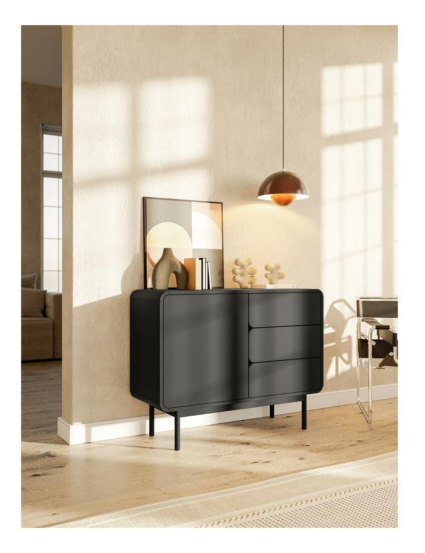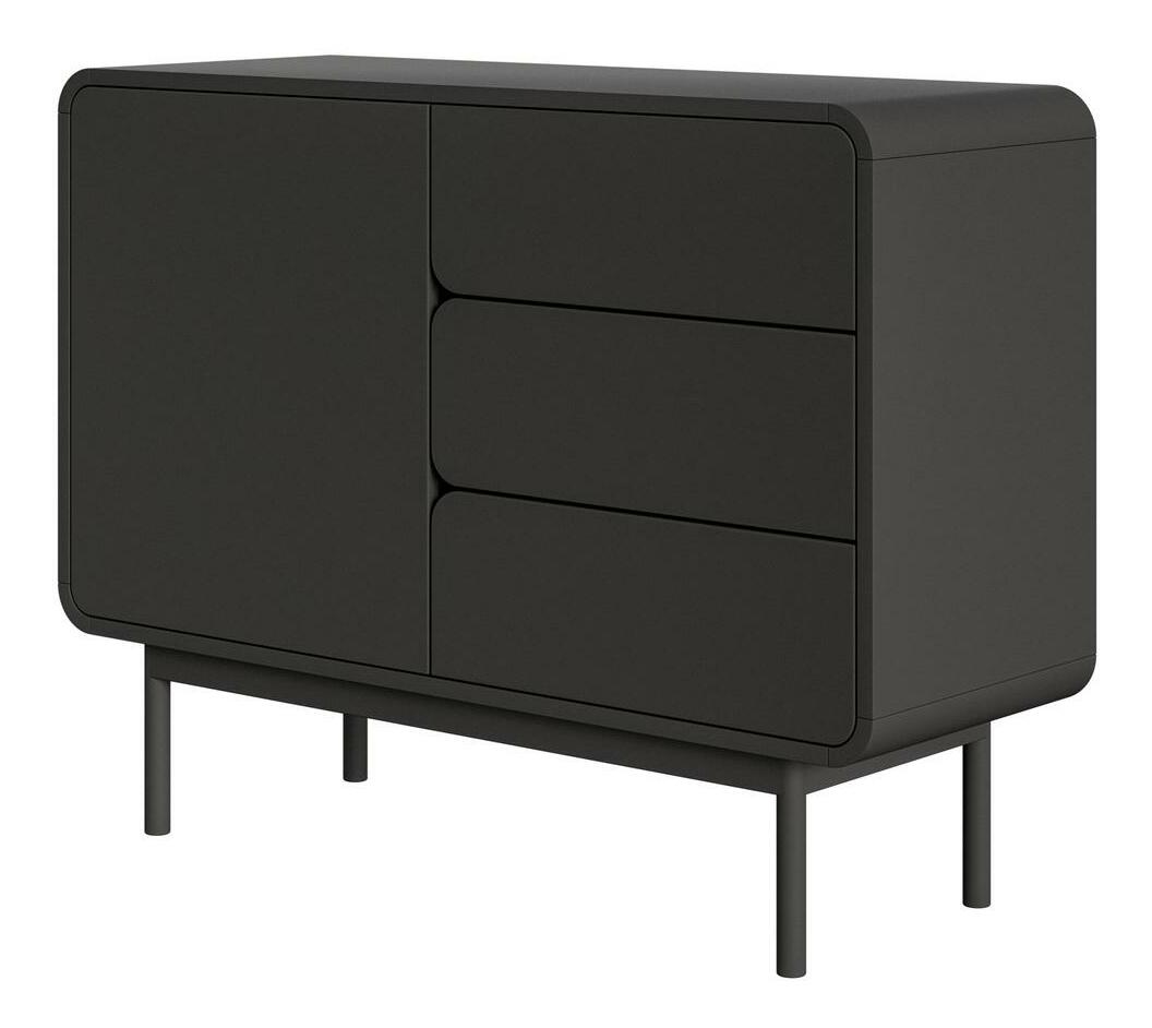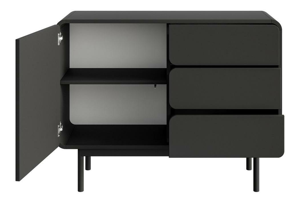 ZobrazitHledáte originální, moderní a funkční nábytek do vašeho interiéru? Kolekce nábytku je pro vás dokonalým řešením Tato jedinečná řada nábytku se vyznačuje originálním designem, minimalismem a jednoduchostí tvarů, díky kterým nábytek dokonale zapadá do nejnovějších trendů interiérového designu. Charakteristickým znakem kolekce jsou oblé tvary masivů, které dodávají nábytku lehkost a styl. Široká škála úložných možností - od praktických skříněk a prostorných zásuvek až po otevřené výklenky - činí nábytek nejen krásným, ale také mimořádně funkčním. Vyrobeno z kvalitní laminované dřevotřísky zaručují trvanlivost a odolnost při každodenním používání. Kolekce je všestranná a flexibilní – díky rozmanitosti tvarů a barev tento nábytek vypadá skvěle jak jednotlivé prvky, tak i jako sada. S úspěchem je využijete jak v obýváku, tak v ložnici. Díky kolekci si snadno zařídíte interiér, který bude odrážet váš jedinečný styl a potřeby. Vyberte si a přesvědčte se, jak jednoduše si vytvoříte prostor, ve kterém se budete cítit opravdu pohodlně Detaily produktu: jednodveřová komoda 104 cm, prémiový produkt, tři prostorné zásuvky, dvě uzavřené police, vyrobená z 18 mm laminované dřevotřísky, která! zvyšuje kvalitu a strukturální stabilitu nábytku, barva desky: Černá U12001 SM, povrchová úprava čel zásuvek a skříněk se zvýšenou odolností proti otiskům prstů, ABS hrany 0,8 mm, polská výroba, zadní stěna z HDF desky 3 mm, překrývací panty značky Blum a Hafele, kuličková vedení, otevírání push to Hafele, excentry značky Hafele, nohy z bukového dřeva, lakované Na ilustračním foto jednotlivých rozměrů jsou vnitřní rozměry polic a zásuvek.