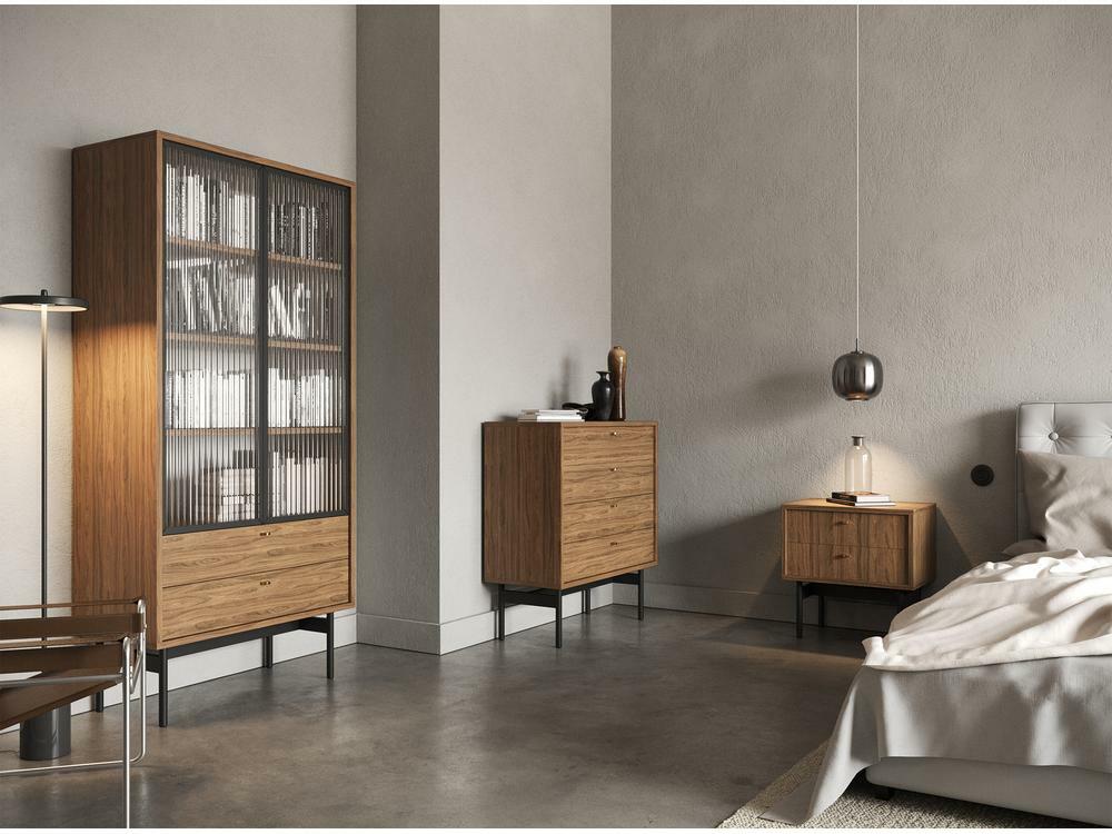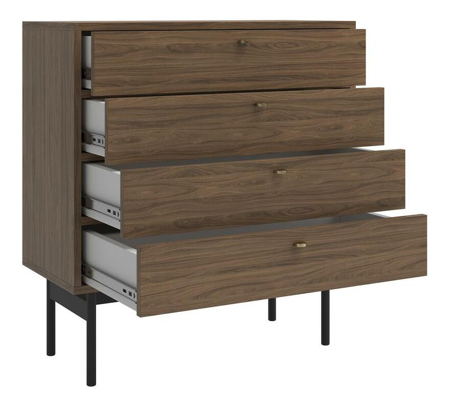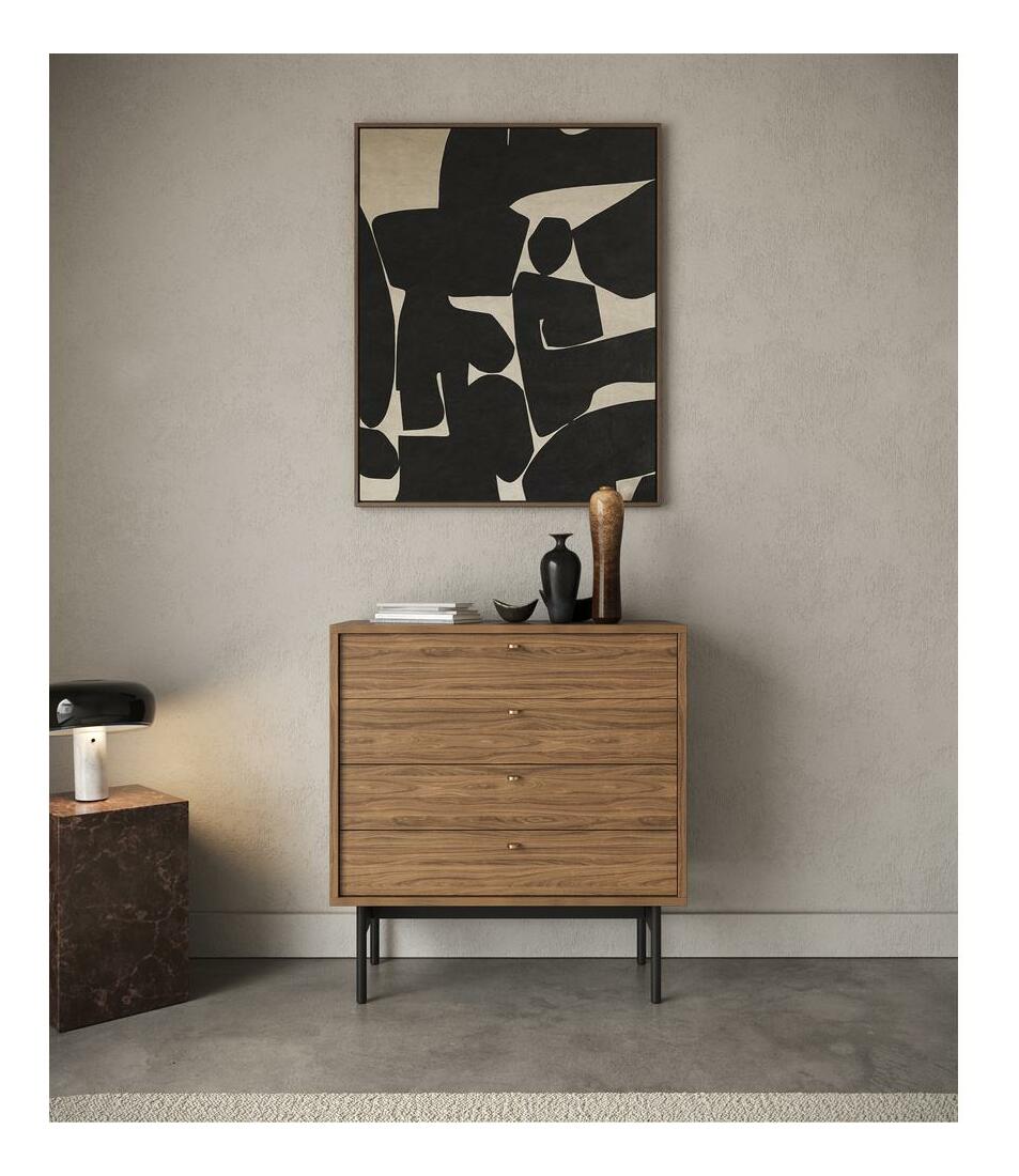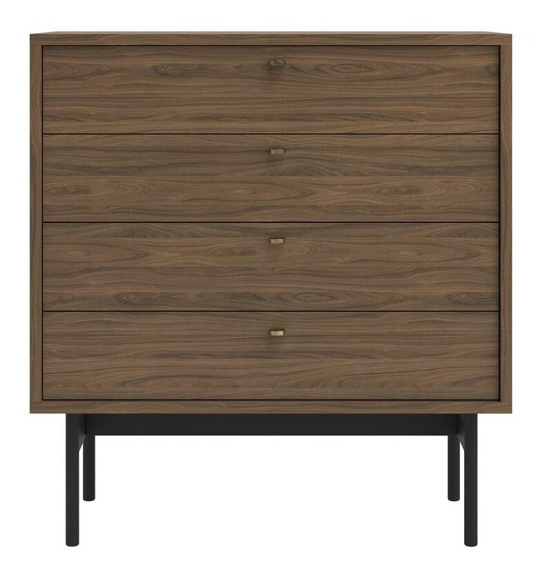 ZobrazitChcete změnit vzhled vašeho interiéru? Výběrem naší kolekce potěšíte své hosty tím, že vnesete do svého obývacího pokoje jedinečné uspořádání zdůrazňující jemnost, eleganci a zároveň harmonii. Komoda s jedinečným designem dokonale zapadne do moderních interiérů. Je vyroben z kvalitní laminované dřevotřískové desky, která zajišťuje dlouhodobé a bezproblémové používání. Jeho charakter obohacuje pevný rám vyrobený z oceli, který činí nábytek nejen odolným, ale dodává mu i industriální šarm. Rafinovaný detail v podobě zlatých úchytek je zase nejen praktickým prvkem, který usnadňuje otevírání, ale dodává celé skříňce také jemný lesk. Komoda byla navržena s ohledem na funkčnost, proto má čtyři šuplíky na různé druhy předmětů. Přírodní ořech Carini v kombinaci s černým rámem a zlatými úchyty dodává interiéru jemný, ale rafinovaný charakter. Tento kus nábytku je nejen praktickým úložným řešením, ale také designovým prvkem, který zdůrazní individuální styl každé místnosti. Kolekce - vyberte si dokonalost pro svůj interiér ještě dnes Detaily produktu: korpus a čela z laminované desky Ořech Natural Carini H3710 ST9, rám vyrobený z černé prášek lakované oceli, která usnadňuje udržování pořádku pod nábytkem, úchyty ve zlaté barvě! vyrobeno z broušené oceli.