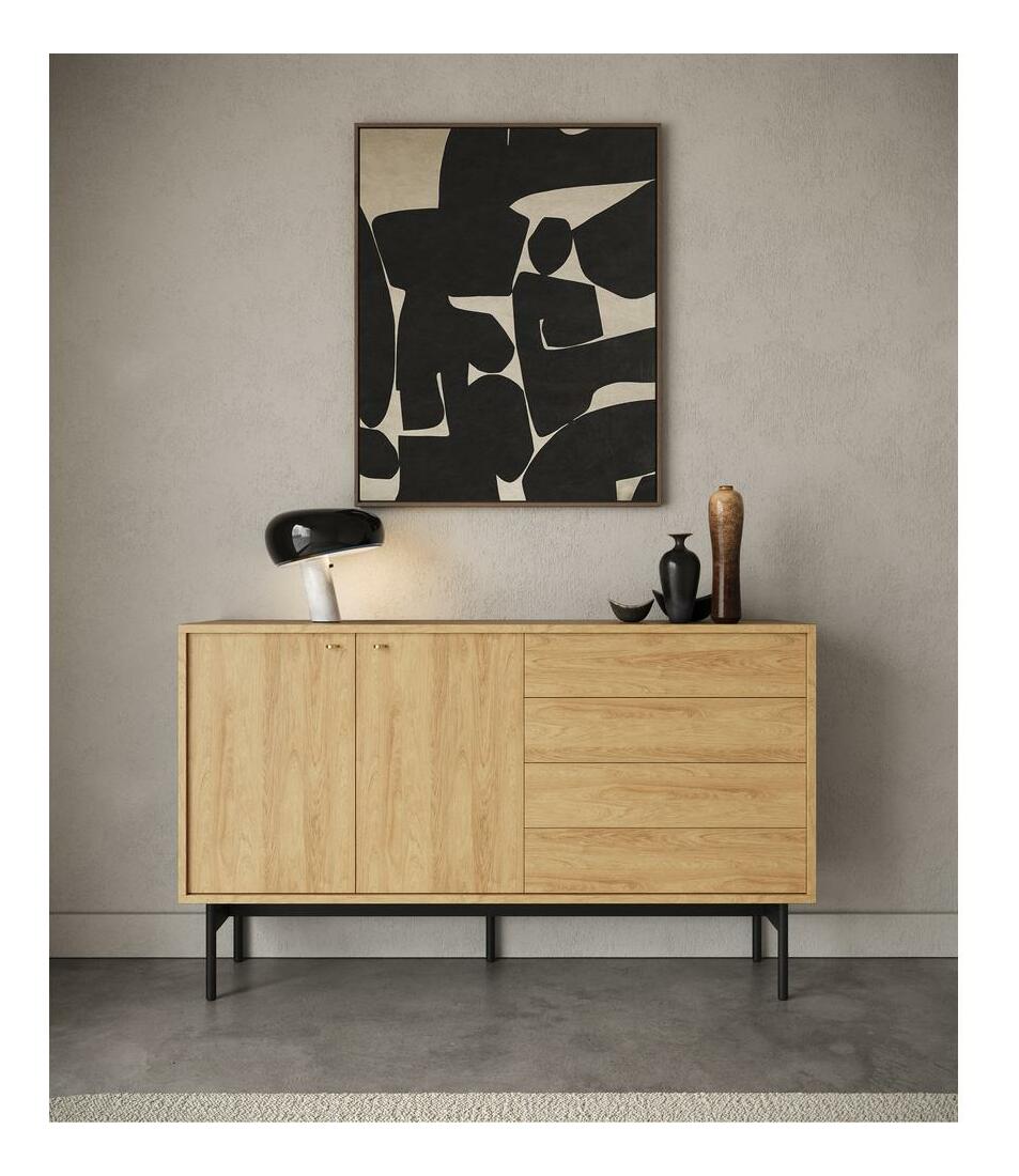 Komoda Oscar O6 (přírodní hikor + černá)
