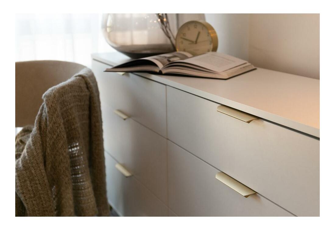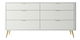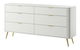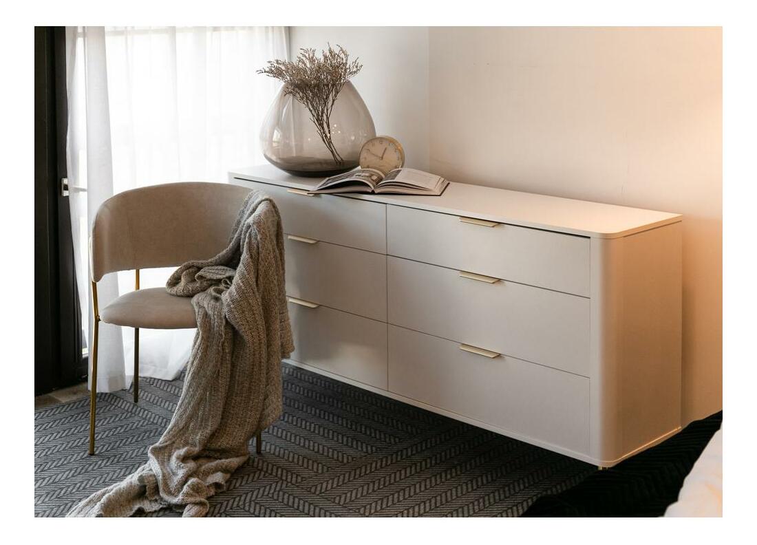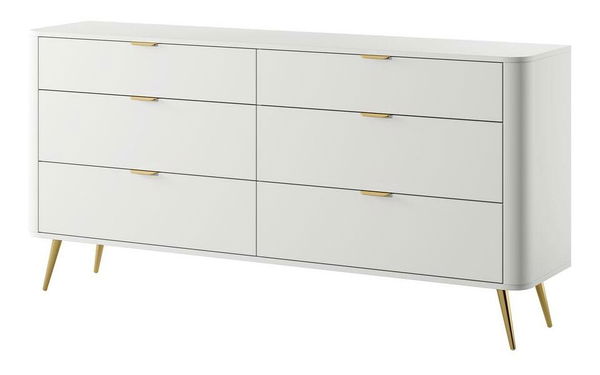 ZobrazitNudí vás klasické tvary nábytku? Chcete změnit svůj byt? Vyberte si kolekci a překvapte všechny své hosty Komoda je moderní kus nábytku, který překvapí svým tvarem. Zaoblené hrany dodávají eleganci a jsou vhodné pro děti. Komoda má až šest zásuvek, které vám usnadní uspořádání všech potřebných doplňků a vychytávek. Další výhodou je stolová deska, kde si můžete vystavit fotografie svých blízkých nebo suvenýry z dlenky. Nábytek skvěle poslouží iv ložnici jako místo pro drobné oblečení nebo spodní prádlo Detaily produktu: korpus a přední díly z laminované nábytkové desky Kronospan 6459 SM v barvě Platinum White, konstrukce vyztužená ABS hranami, které mu dodávají stabilitu a odolnost. vysoké ocelové nohy v chrom zlaté barvě s malými bílými nožičkami, které zabraňují poškrábání podlahy, zásuvky umístěné na 27 mm kuličkových vodítkách, jemné zlato, broušené úchyty dodávají funkčnost a jsou stylu ozdobou čel.