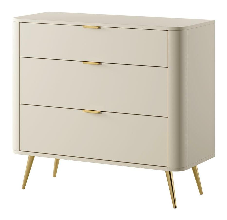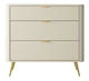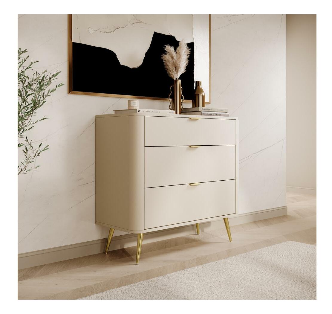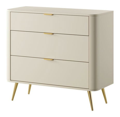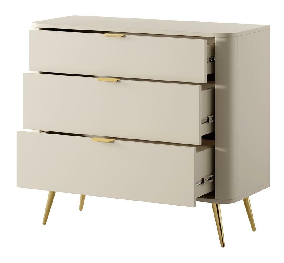 ZobrazitNudí vás klasické tvary nábytku? Chcete změnit svůj byt? Vyberte si kolekci a překvapte všechny své hosty Komoda je moderním kusem nábytku, který překvapí svým tvarem, dodávají eleganci a jsou vhodné pro děti. Komoda má tři prostorné zásuvky, do kterých se vejde vše potřebné: drobná elektronika, dokumenty, oděvy nebo kancelářské potřeby. Další výhodou je stolová deska, na kterou můžete umístit elegantní vázu, fotografie blízkých nebo čerstvé květiny. Moderní tvar dodává interiéru lehkost a činí jej útulnějším. pochromované zlato, mají malé, bílé nožičky, které zabraňují poškrábání podlahy, zásuvky umístěné na 27 mm kuličkových vodítkách, jemné zlato, broušené úchyty dodávají funkčnost a jsou stylu ozdobou čel.