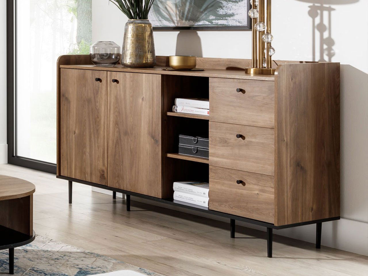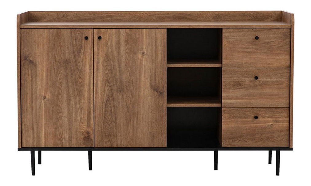 ZobrazitKomoda je ideální volbou pro ty, kteří hledají pohodlí a styl. Komoda Peczo nabízí barevnou kombinaci, která činí nábytek elegantním. Klasický styl komody však narušují nožičky a úchyty z kovu. Díky těmto akcentům dobře poslouží iv loftových interiérech. Komoda je vybavena prostornou, dvoukřídlovou skříní. Jeho centrální částí je otevřená police, ideální pro vystavení dekorací, zatímco na vnější straně jsou tři zásuvky na drobné příslušenství. Prezentovaná komoda je vyrobena z pevných komponentů a její další výhodou je systém tichého zavírání. Rozměry: šířka: 150 cm, výška: 90 cm, hloubka: 45 cm, Provedení: dřevotříska 16mm, ráfek: ABS (viditelná místa), papír (neviditelná místa), zadní stěna: 3 mm HDF černá deska, nohy a rukojeti vyrobené z kovu, panty s měkkým zavíráním ( změkčovačem Rozměry produktu jsou uvedeny v centimetrech a mohou se lišit od skutečných rozměrů o ± 3 cm. Rozměry nábytku na přání zákazníků neměníme Záruka: 24 měsíců