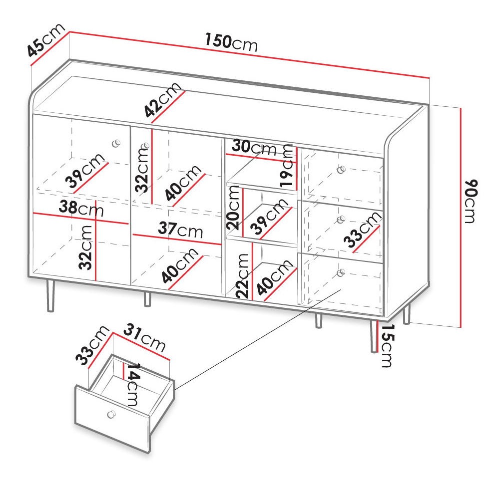Rozměry produktu jsou uvedeny v centimetrech a mohou se lišit od skutečných rozměrů o ± 3 cm.