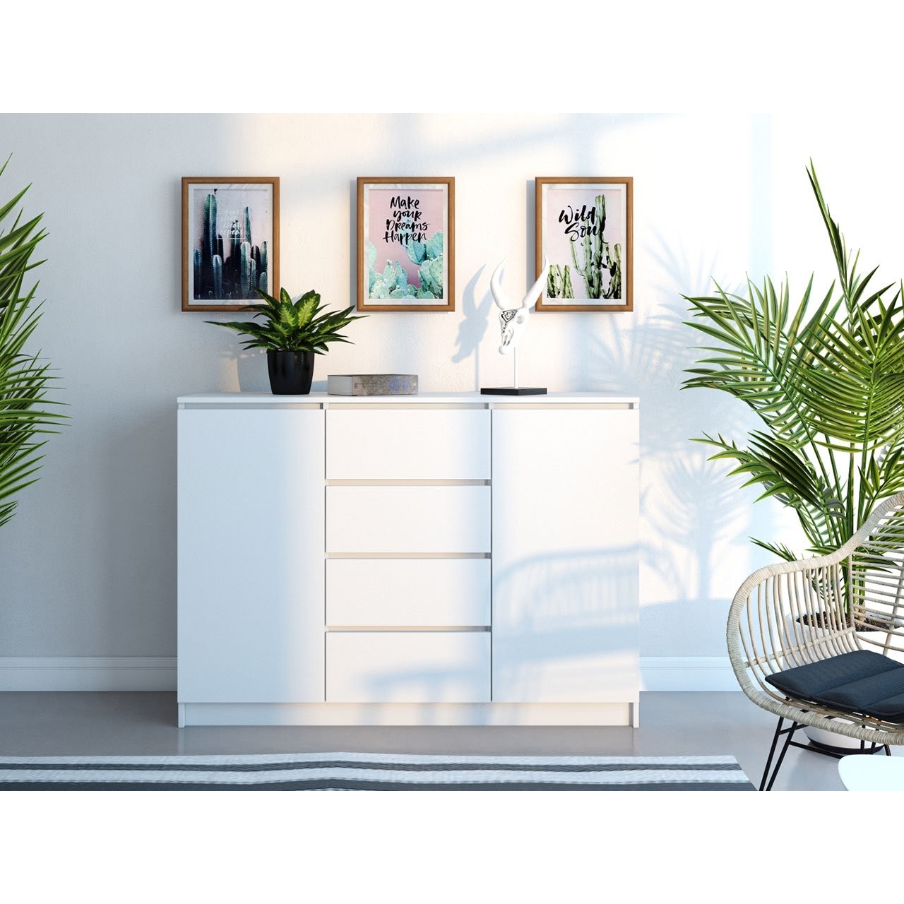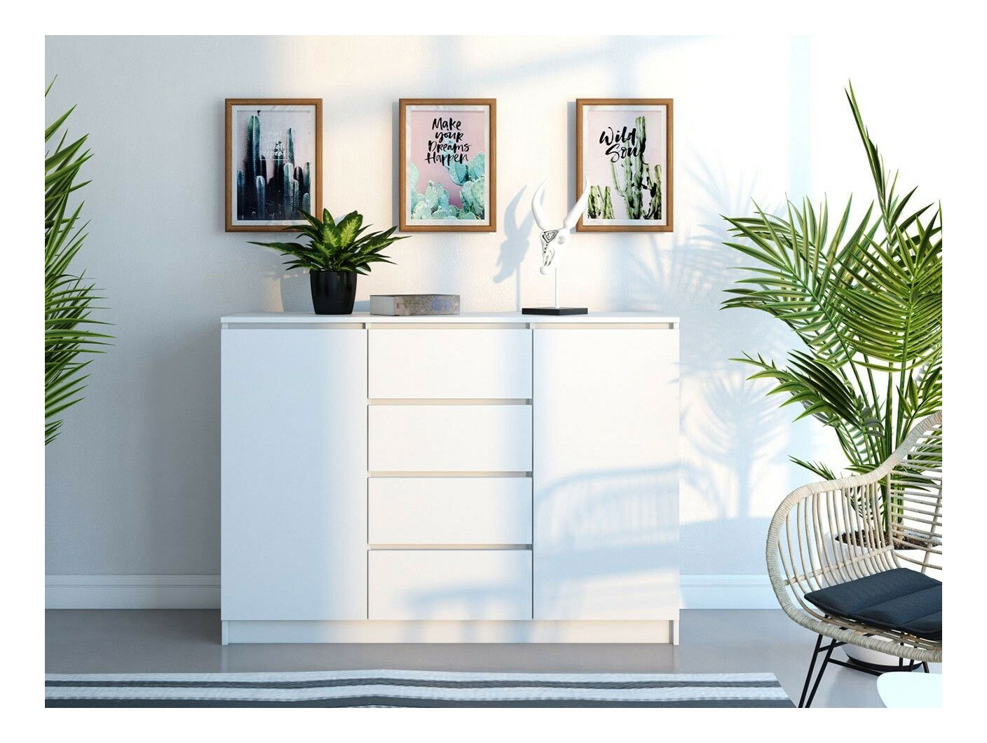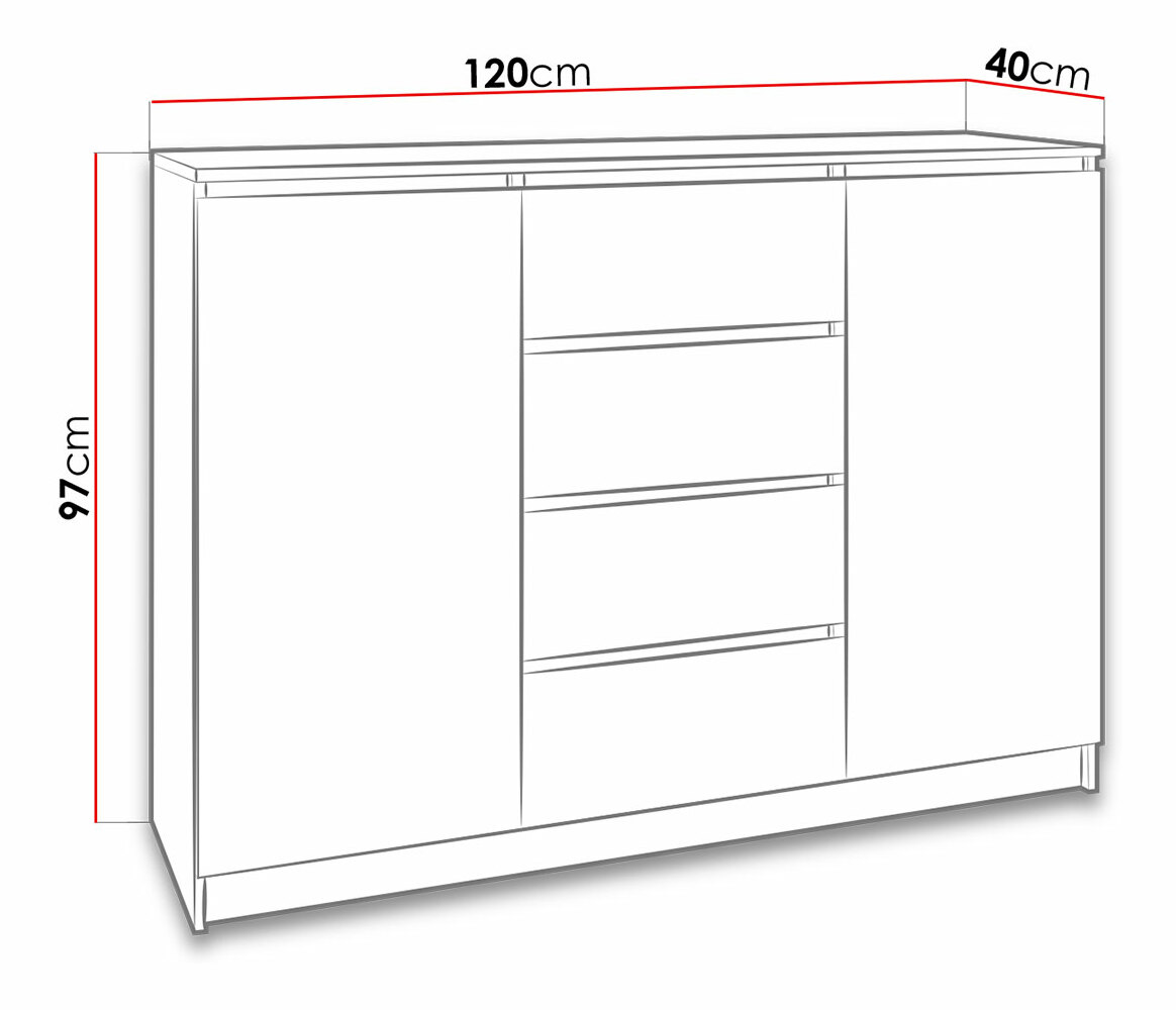 Perseia 2D4S je nadčasová komoda, která bude užitečná zejména v obývacím pokoji i ve stylové ložnici. Poskytuje dostatek úložného prostoru – je vybavena množstvím prostorných zásuvek a skříněk, které umožní Jednoduché uspořádání a roztřídění oděvů nebo věcí každodenní potřeby. Má bezúchytové fronty, které jí dodávají moderní vzhled. Je k dispozici v univerzálních barvách, díky nimž bude dokonale ladit s uspořádáním vašeho pokoje. Komoda je vyrobena z laminované dřevotřísky, která zaručuje vysokou kvalitu a bezpečnost při používání.