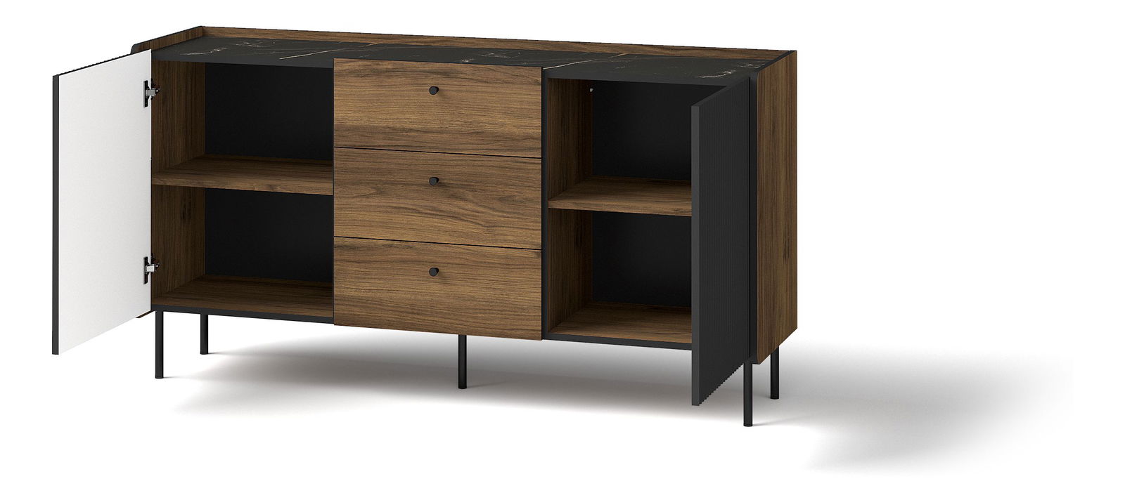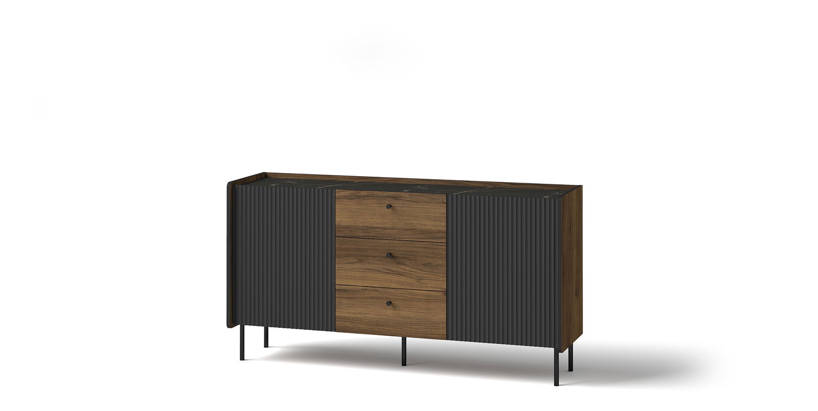Komoda Phelan P5 v odstínu ořech warmia s černou barvou je praktickým a elegantním doplňkem do vašeho interiéru. S výškou 78,6 cm a šířkou 150 cm poskytuje dostatek úložného prostoru pro vaše věci. S hloubkou 40 cm se vejde do každé místnosti a dokonale se hodí do moderní i tradiční estetiky. Využijte ji do svého obývacího pokoje nebo ložnice jako úložiště pro oblečení, knihy nebo dokonce jako nábytek pro televizor. Je vyrobena z kvalitního materiálu a její robustnost zaručuje dlouhou životnost. Skvělá volba pro ty, kteří hledají praktickou a stylovou komodu.