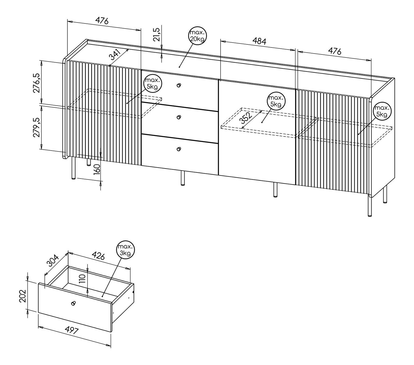 - Se zásuvkami a dvířky