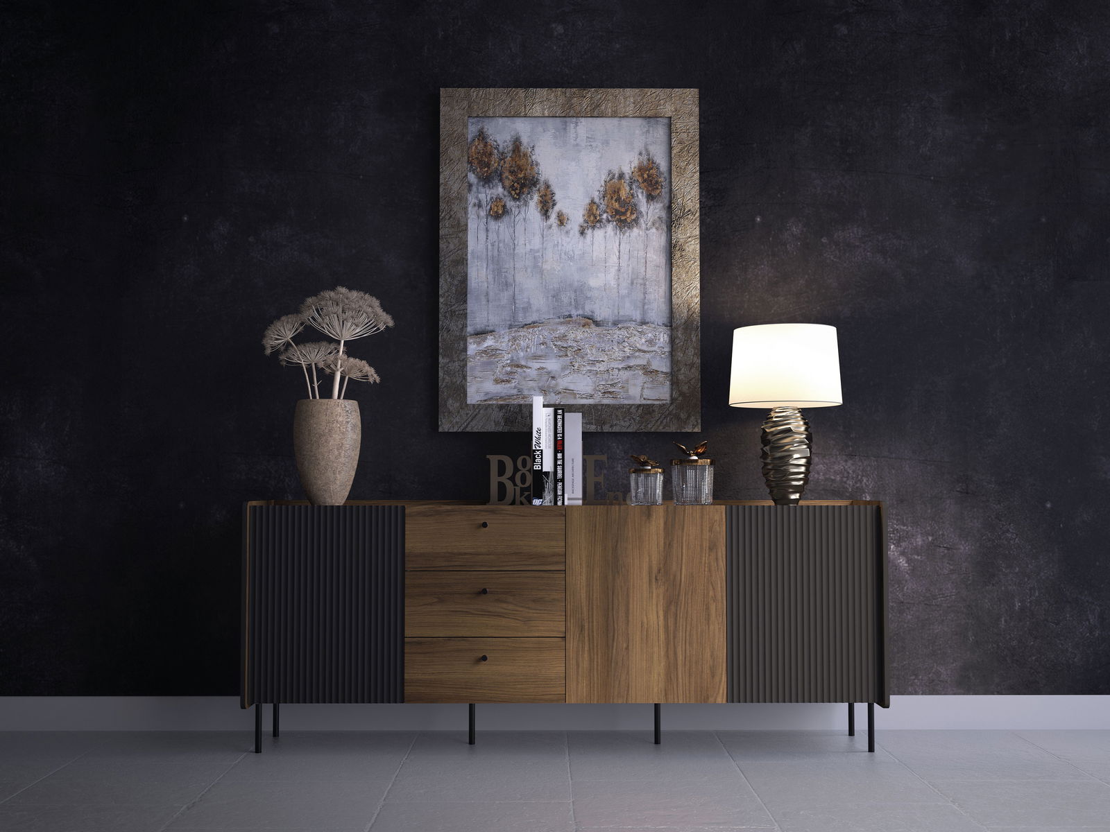 Komoda Phelan P6 (ořech warmia + černá)