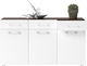 Designová komoda v bílém lesku, kterou doporučujeme k obývákové sestavě Presto s označením PR-01a nebo PR-01b. Kombinace tří dvířek a nad nimi tří zásuvek. Uvnitř je za každými dvířky police.