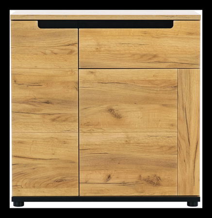 ZobrazitKomoda Priss PR2 výška 86 cm hloubka 39,5 cm Dub craft zlatý + Černá je moderní a elegantní skříňka, která se bude hodit k jakémukoli interiéru. S její výškou 86 cm a hloubkou 39,5 cm nabídne dostatek úložného prostoru pro vaše věci. S výrobou z masivu a MDF desek zaručí vyšší odolnost a kvalitu. Tato skříňka má maximální nosnost až 20 kg, takže můžete bez problémů uložit i těžší věci. Díky svému designu a kvalitě se stane perfektním doplňkem do vašeho domova a poskytne vám praktický úložný prostor.