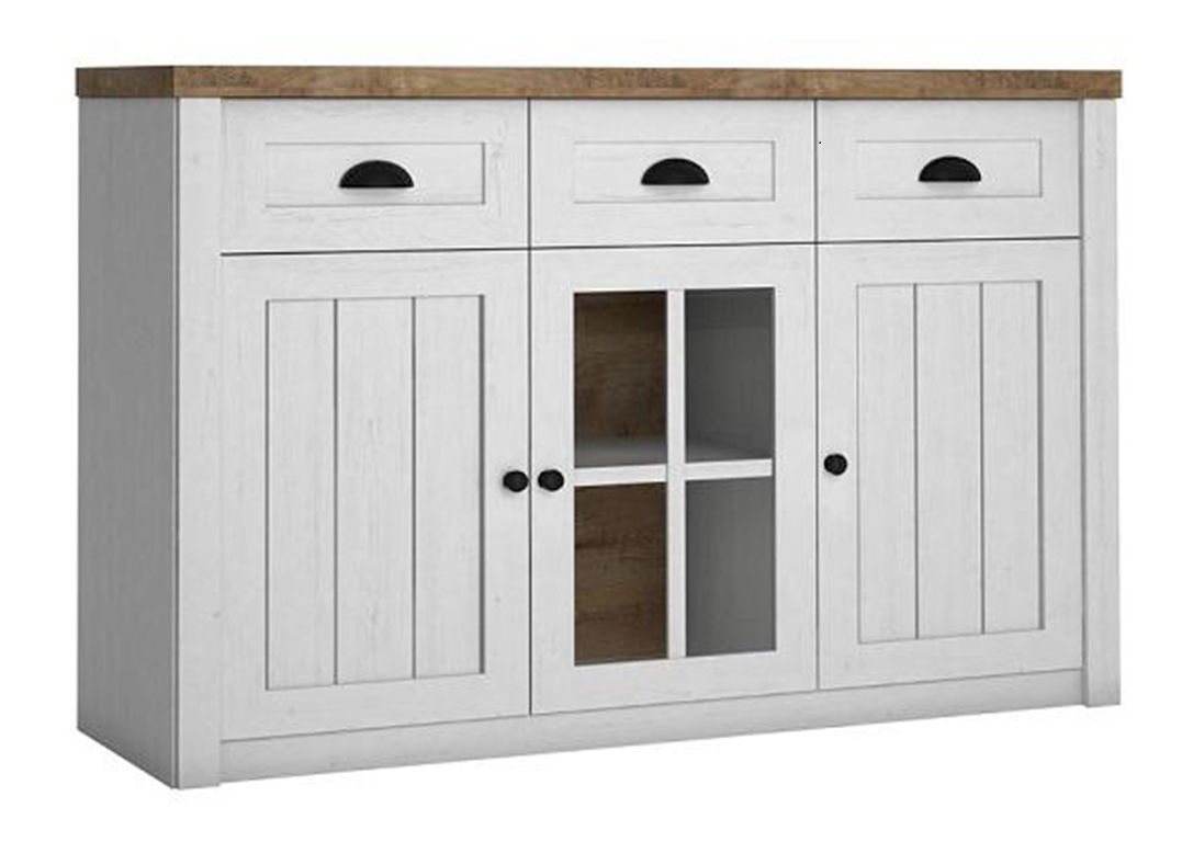 Komoda Provense K3S o výšce 88 cm a hloubce 43 cm je vyrobena ze dřeva sosny Andersen a dubu Lefkas. Její 4dílná konstrukce disponuje zásuvkami a dvířky, které umožňují přesné uspořádání věcí dle vašich požadavků. Se 4 až 3 zásuvkovým uspořádáním je tato komoda praktickým doplňkem do každé domácnosti. Je vyrobena z kvalitních materiálů, jako jsou laminovaná deska, dřevotříska a sklo, což zajišťuje její trvanlivost. Bílá barva a lesklý bílý povrch dodávají komodě moderní a elegantní vzhled. Komoda Tamie Typ 25 je ideální pro ty, kteří hledají stylové a praktické řešení pro svůj domov. Rozměry komody jsou 130x43x88 cm a je dodávána v demontu. Tloušťka materiálu korpusu je 15 mm a vrchní desky 36 mm.