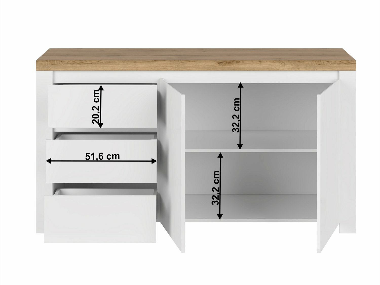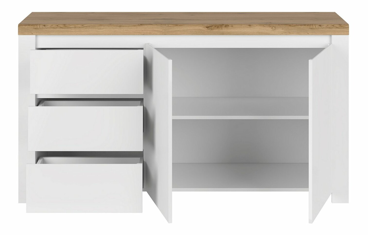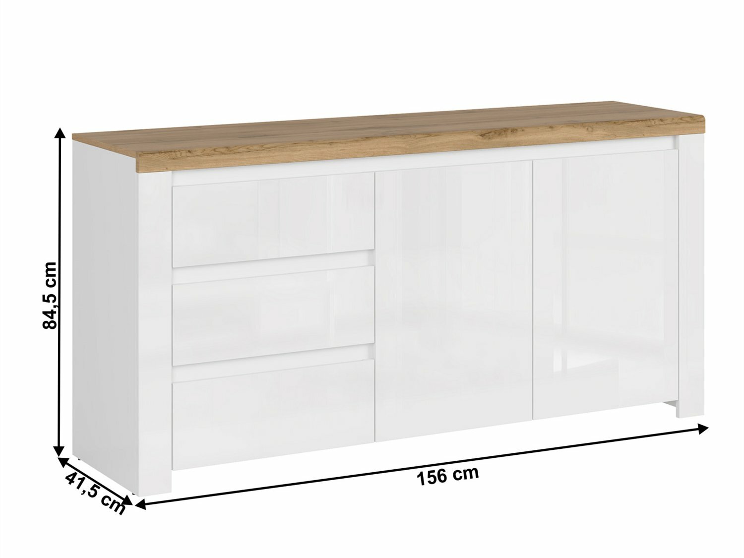 Komoda Ralano (vysoký lesk bílý + dub artisan)