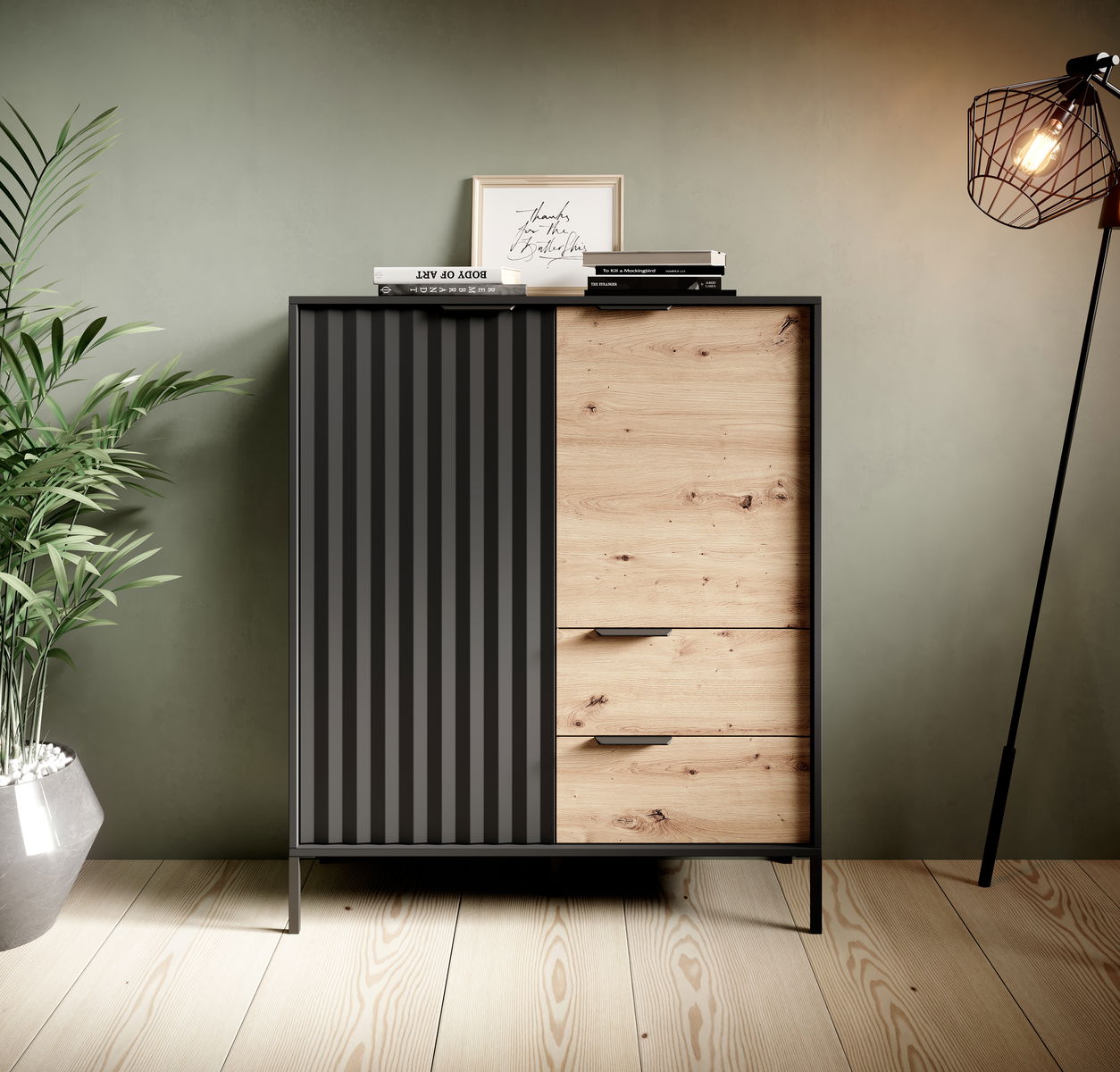 Komoda Rastafa 2D2S (dub artisan + černá)