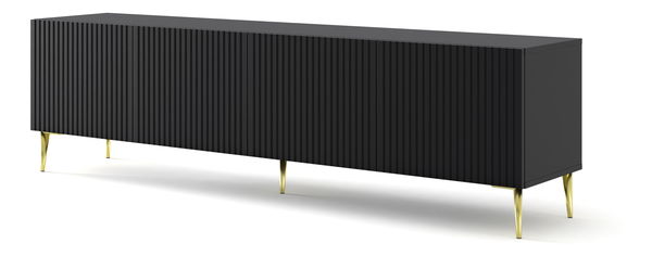 ZobrazitTV stolek/skříňka Rawy 4 (černá) o výšce 58 cm, šířce 200 cm a hloubce 42 cm je nádherným kusem nábytku z kolekce, který zaujme svou elegancí a jedinečným designem. Jeho moderní tvary se dokonale hodí do jakéhokoli interiéru a mění vzhled obývacího pokoje či jídelny. Frézovaná čela a Kovový rám podpírající tělo dodávají tomuto kusu nábytku styl a výraznost, ale zároveň i stabilitu. Opticky zvětší prostor a poskytne dostatek úložného prostoru pro vaše TV příslušenství a další věci.