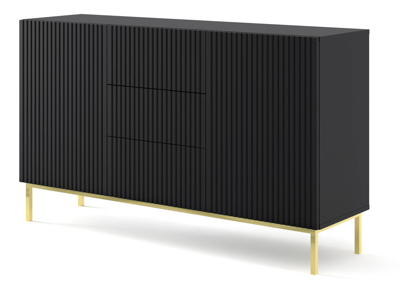 ZobrazitKomoda Rawy 2d3s (černá) o výšce 89 cm, šířce 150 cm a hloubce 42 cm je nábytek z elegantní kolekce s jedinečným vzhledem. Jeho jednoduché tvary dokonale ladí s frézovanými čely, čímž vytvářejí moderní a vkusný design pro každý interiér obývacího pokoje nebo jídelny. Kovový rám podpírající tělo zajišťuje nejen stabilitu, ale také stylový vzhled. Nechte se inspirovat touto elegantní komodou a dopřejte si kousek nábytku, který přinese do vašeho domova výraznost a styl.