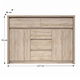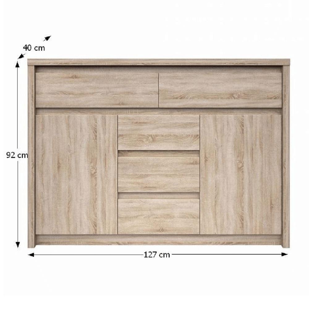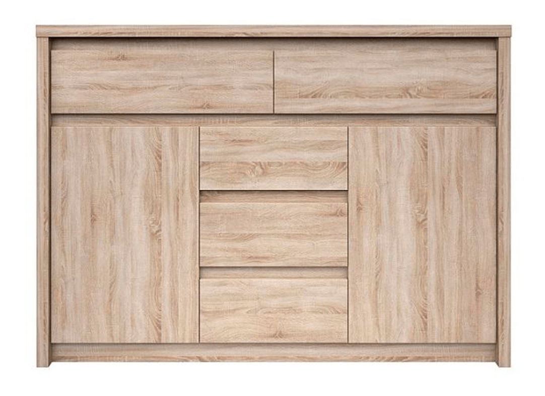 Komoda Rihana Typ 10 o výšce 92 cm a hloubce 40 cm v dub sonoma provedení je ideální kousek nábytku pro Váš domov. Tento kousek je vyroben z DTD laminovaného materiálu, který je velmi odolný a trvanlivý. S rozměry 127x40x92 cm a tloušťkou materiálu 32 mm je tato komoda robustní a stabilní. Tloušťka materiálu zbývajících částí je 16 mm. Tento produkt je dodáván v demontu, což umožňuje snadnou montáž. S úložným prostorem v podobě 4 skříněk jsou Vaše věci v bezpečí a uspořádány. Tato komoda Rihana Typ 10 v dub sonoma provedení je dokonalým doplňkem každého obývacího pokoje nebo ložnice.