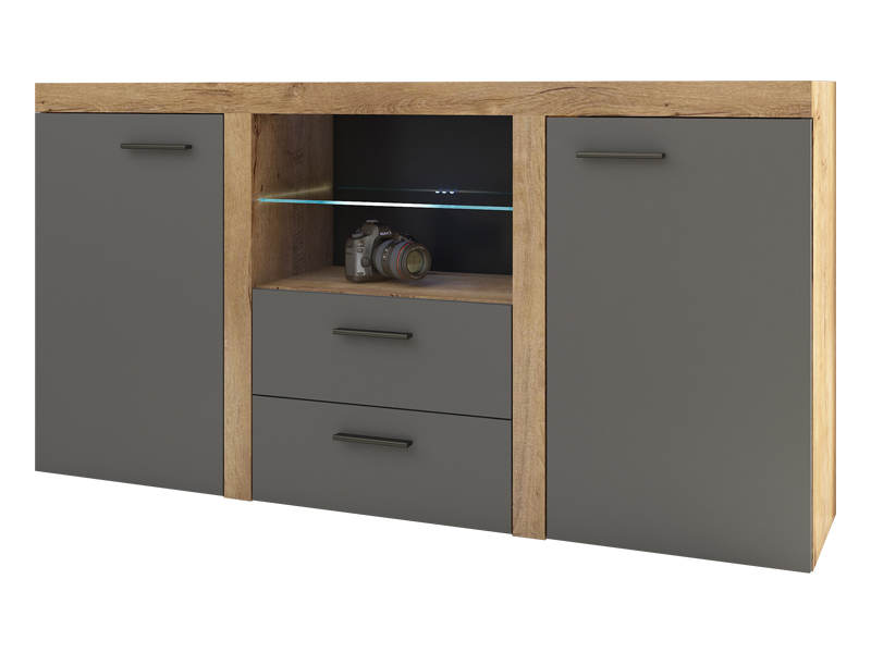 Komoda Rudby (dub lefkas + grafit) (bez osvětlení)