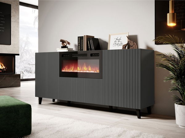 Komoda s elektrickým krbem 180 Tilderi Grey (antracit) *bazar