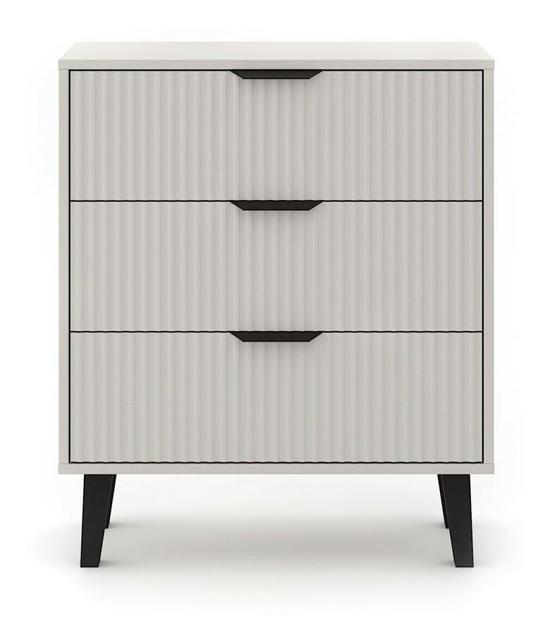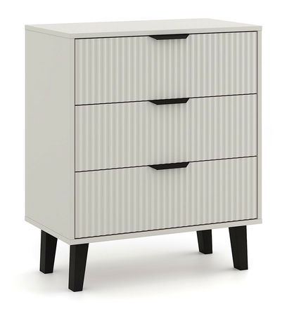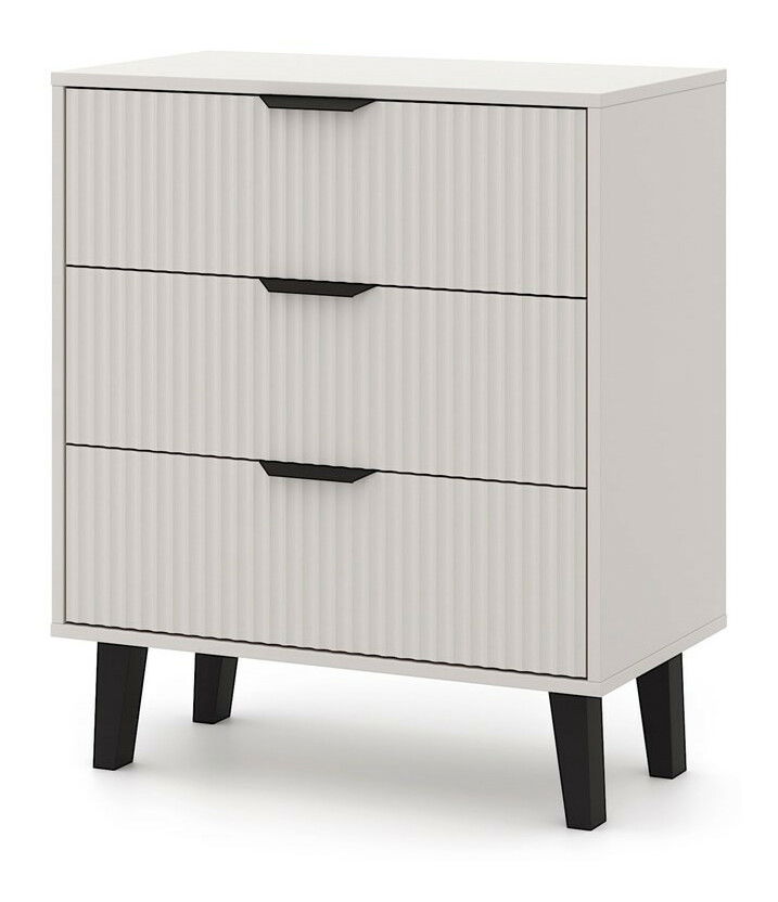 ZobrazitKomoda Sacar 2 v elegantním odstínu kašmíru je ideálním řešením pro ty, kdo hledají funkční a stylový nábytek do svého interiéru. Se třemi prostornými zásuvkami poskytuje dostatek místa pro uskladnění oblečení, dokumentů či různých drobností, přičemž drážkované fronty a moderní černé nohy dodávají nábytku na atraktivitě. Vyrobená z laminované dřevotřískové desky, je odolná vůči poškrábání a snadno se čistí, což zaručuje dlouhou životnost a snadnou údržbu. Tento kus nábytku skvěle zapadne do každé místnosti a dodá jí jedinečný šarm.