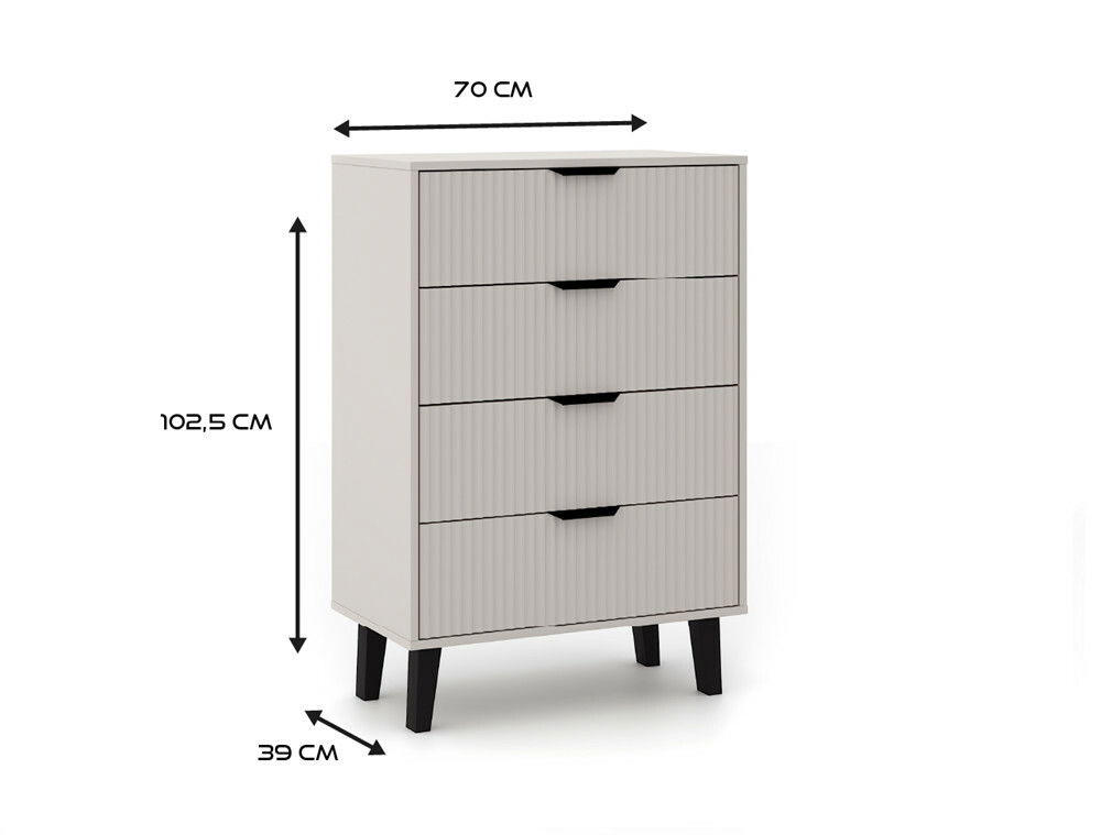 ZobrazitKomoda Sacar 3 v elegantní barvě kašmír je ideálním řešením pro ty, kdo hledají kombinaci moderního designu a praktičnosti. Se čtyřmi prostornými zásuvkami nabízí dostatek místa pro uskladnění oblečení, dokumentů či různých drobností, přičemž drážkované fronty a černé nohy dodávají nábytku stylový vzhled. Vyrobená z odolné laminované dřevotřísky, je snadno udržovatelná a skvěle se hodí do ložnice, obývacího pokoje nebo předsíně. Sacar 3 je opravdu funkční a estetický kousek, který obohatí každý interiér.